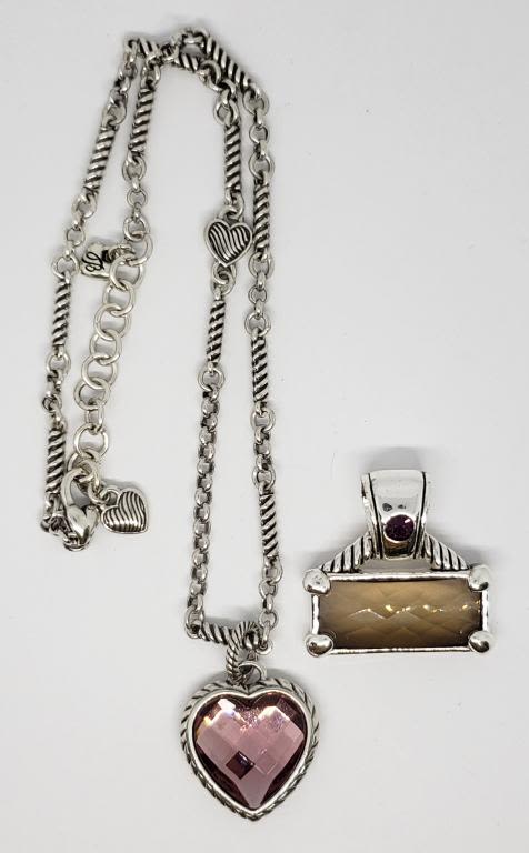 PLUSE (1)SILVER TONED RECTANLGE PENDANT WITH RHINESTONE ACCENT