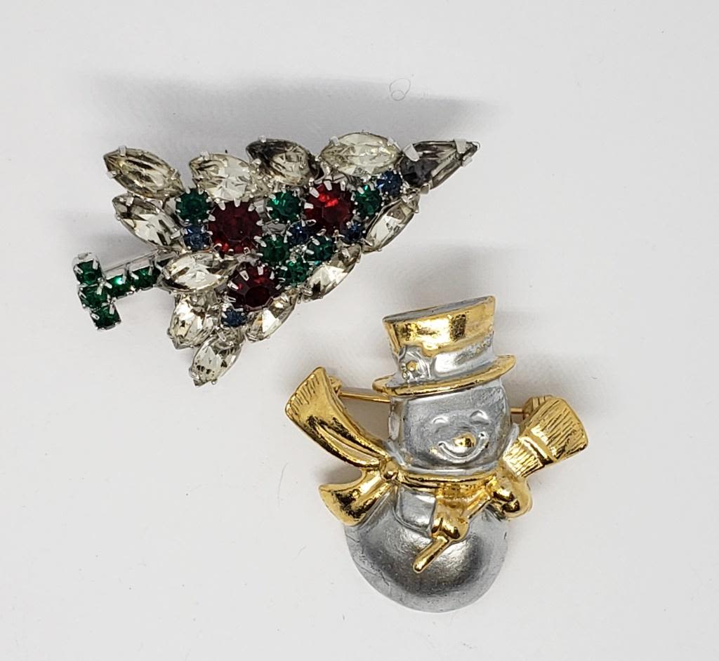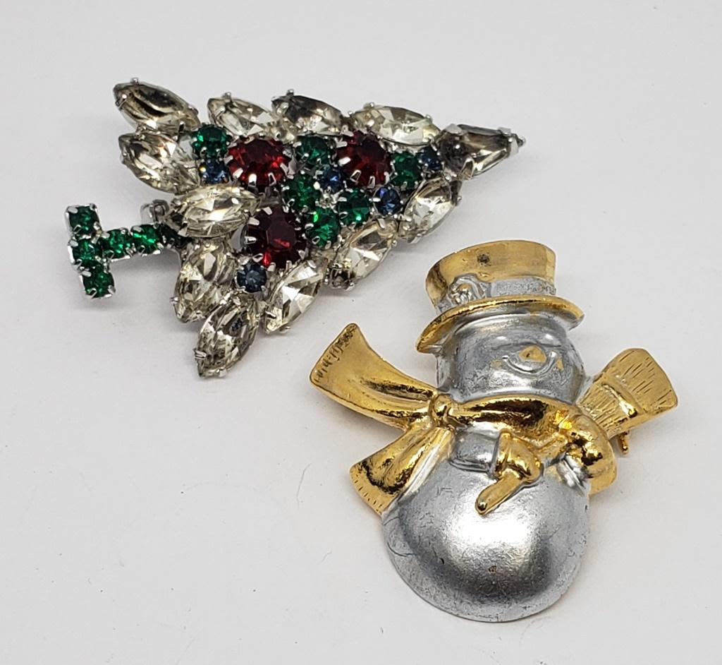 CHRISTMAS TREE & (1)SILVER AND GOLD TONED SNOWMAN