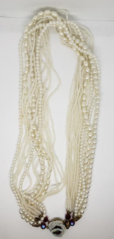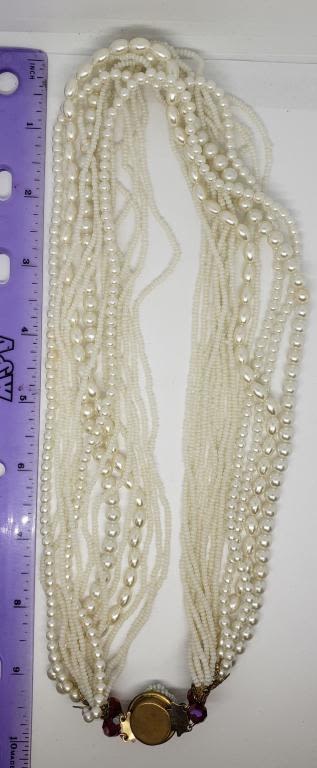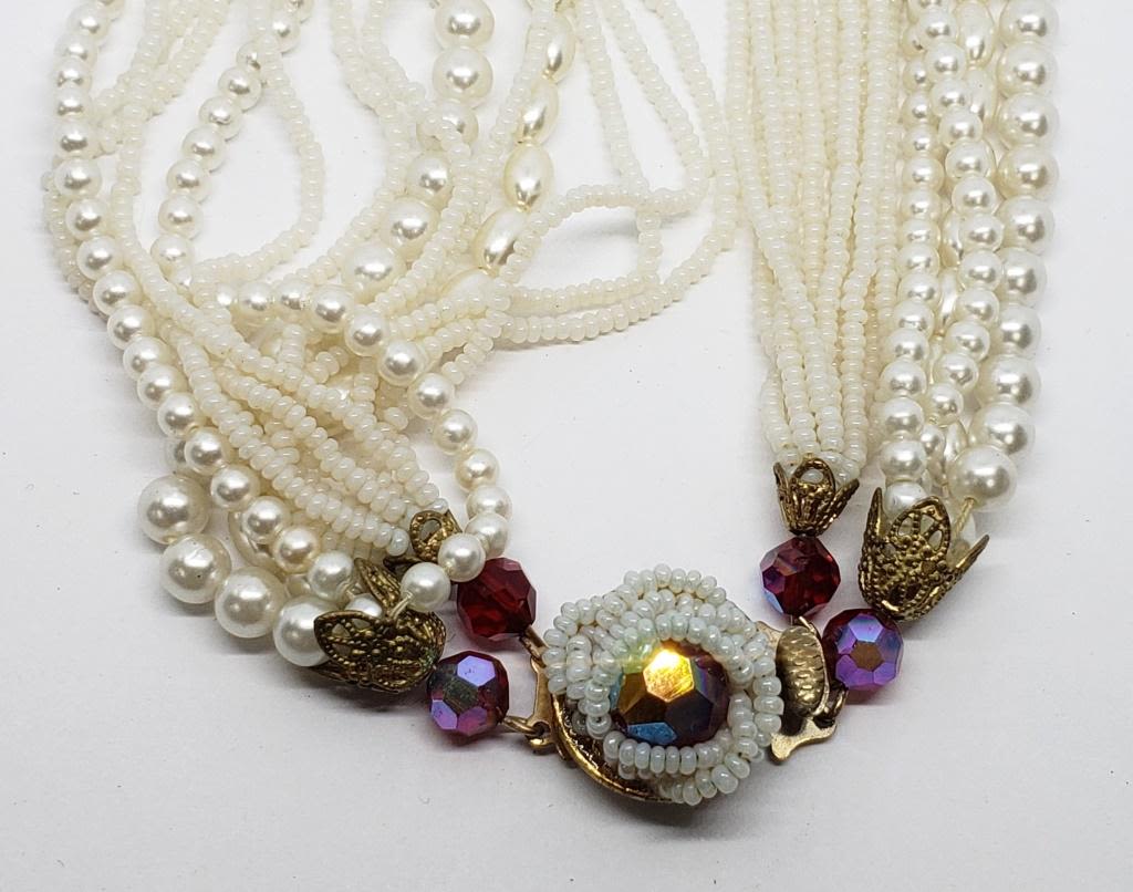 PEARL NECKLACE WITH RUBY RED BEAD ACCENTS-BEAUTIFUL PIECE!!!