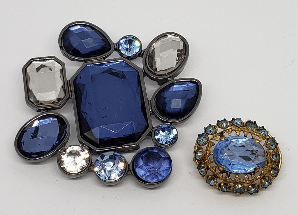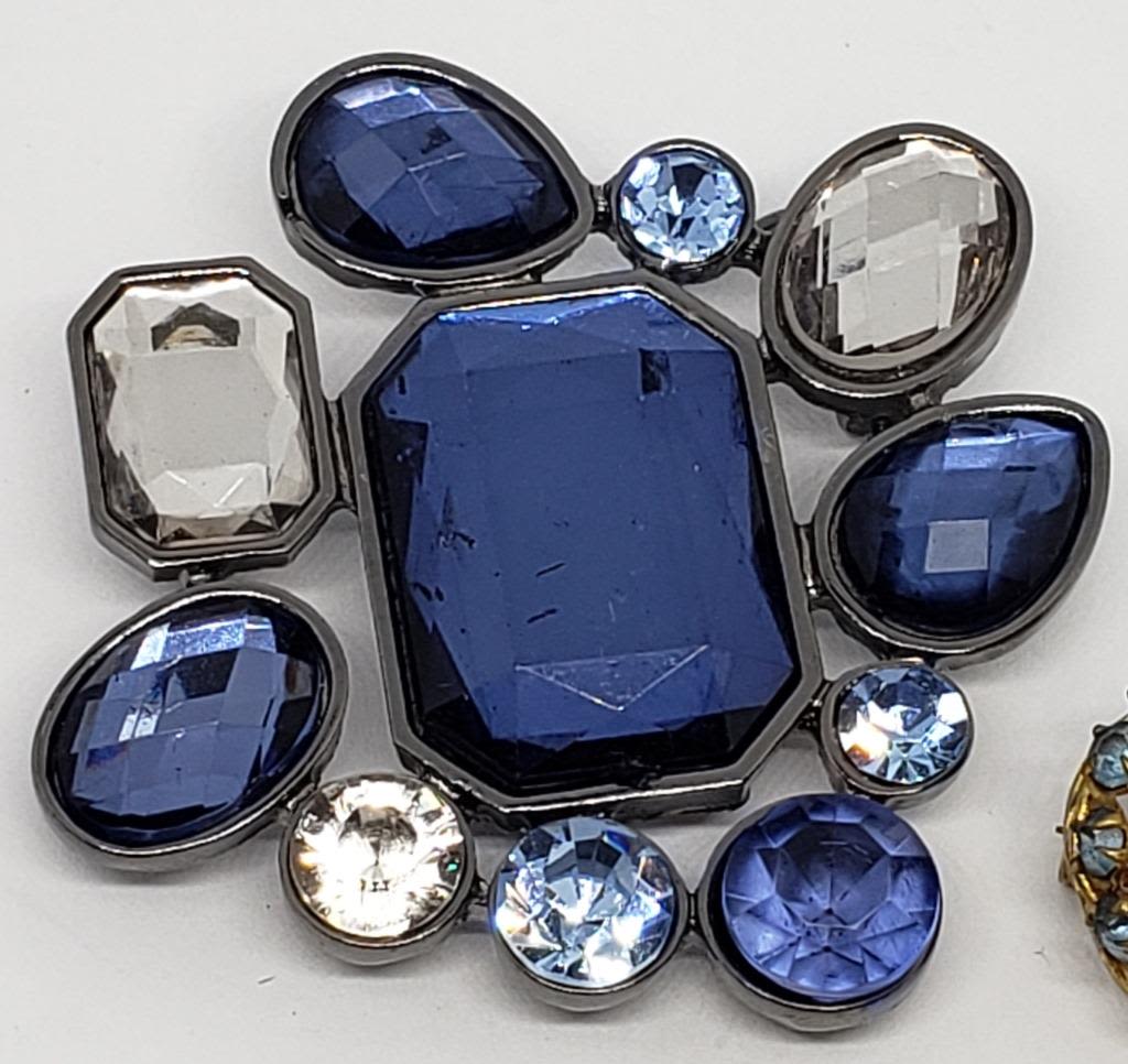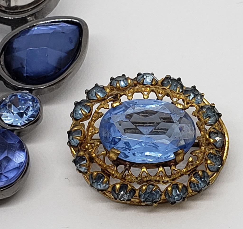 (1)GOLD TONED BABY BLUE RHINESTONE PIN