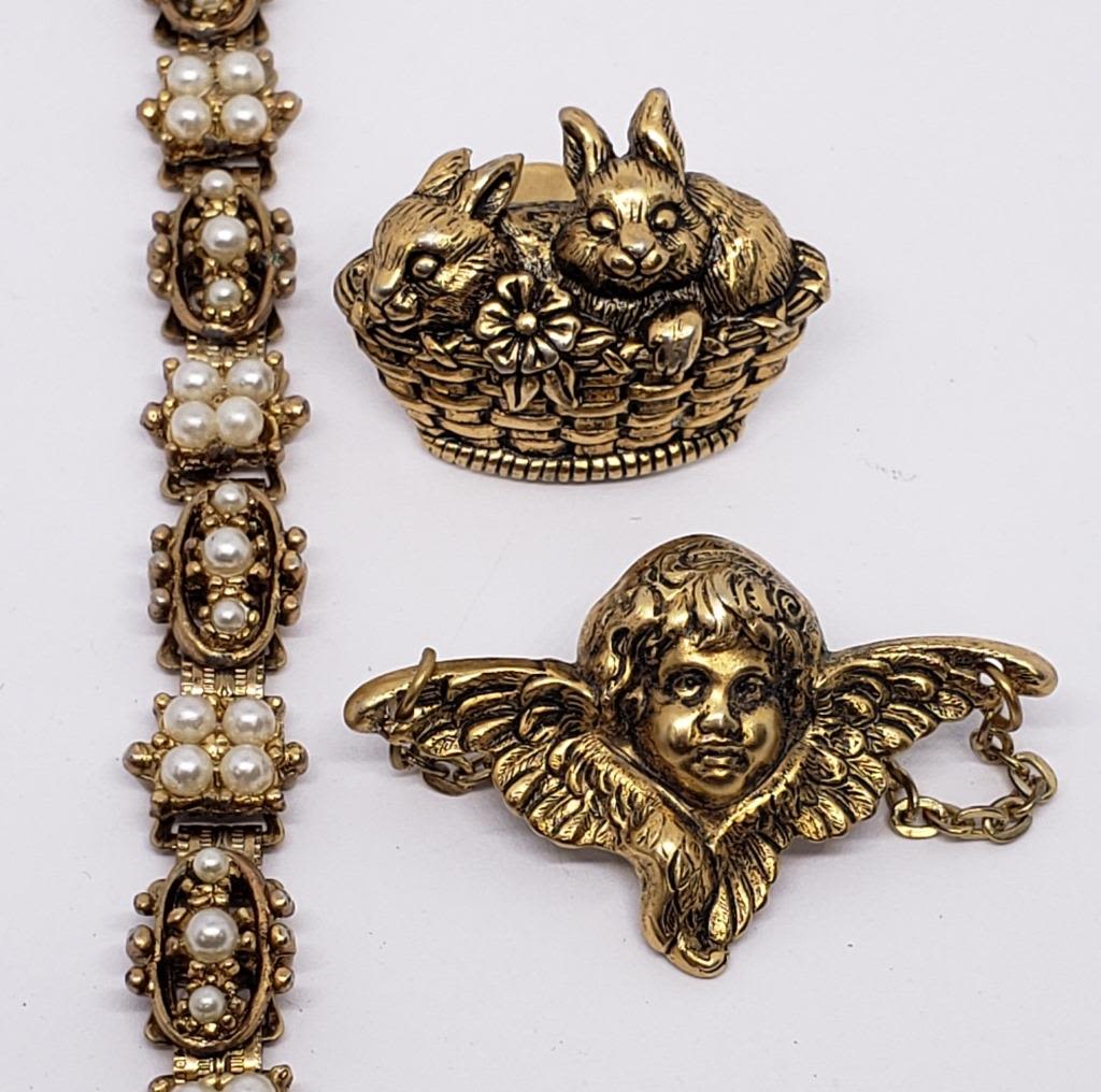 IN BASKET PIN (1)ANGEL PIN (1)PANEL BRACELET WITH FAUX PEARLS
