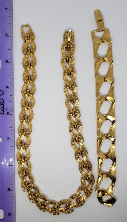 (1)NECKLACE & (1)BRACELET-GOLD TONED