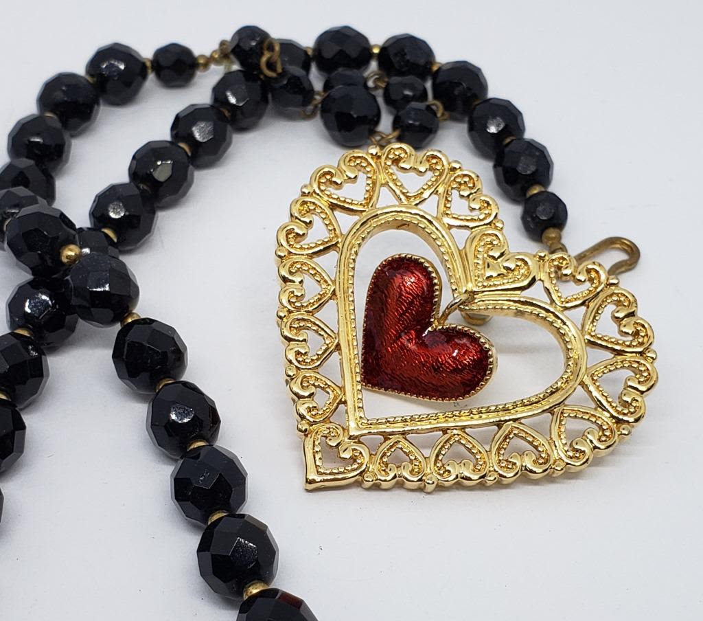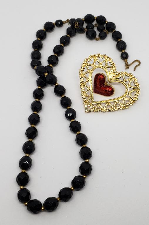 (1)GOLD TONED FILIGREE HEART PIN WITH RUBY RED ENAMEL
