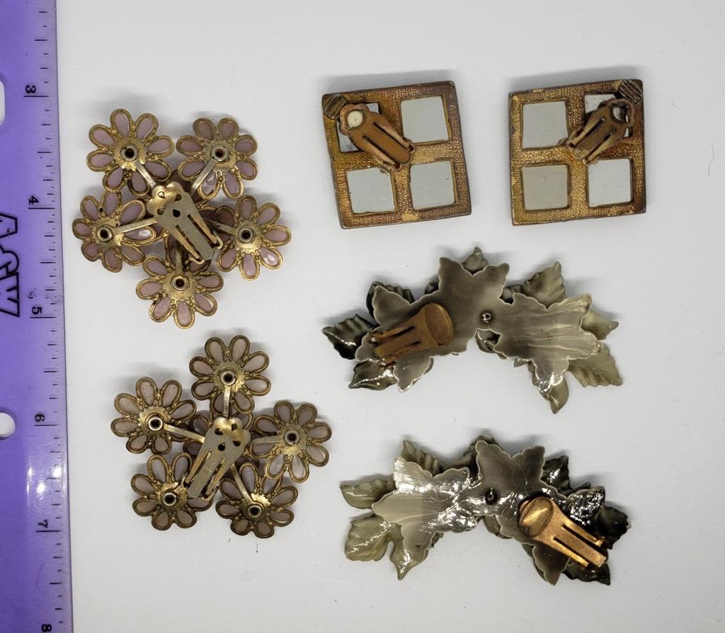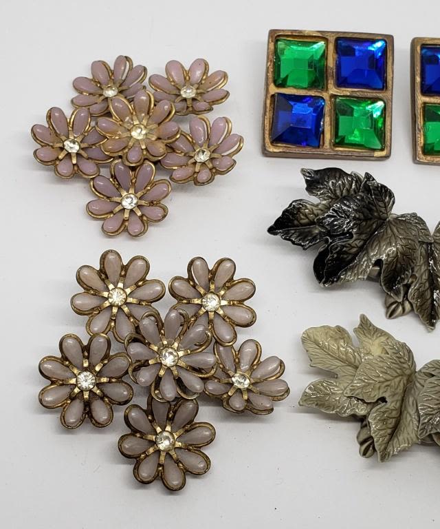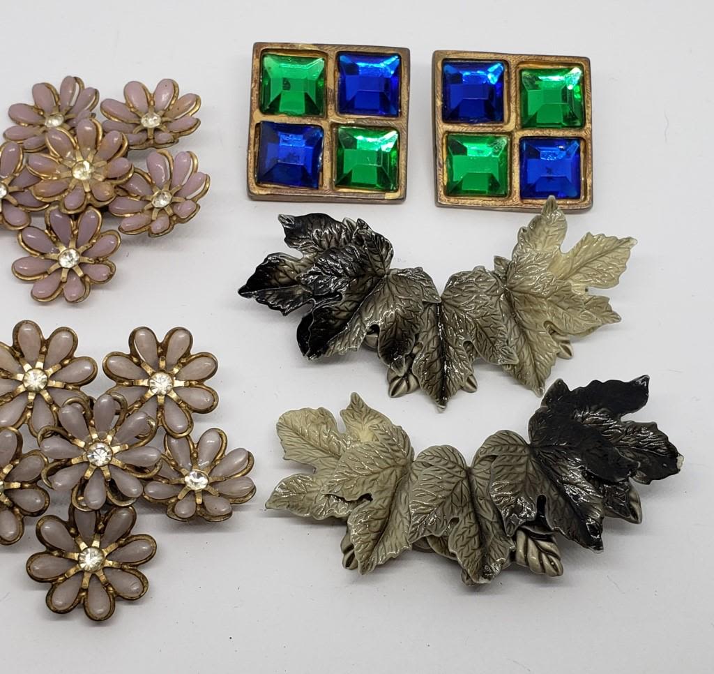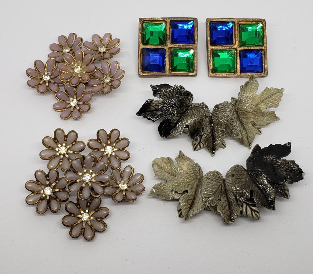 PLUS (1)PAIR OF GOLD TONED CHUNKY CLIP ON EARRINGS WITH GREEN AND BLUE RHINESTONES