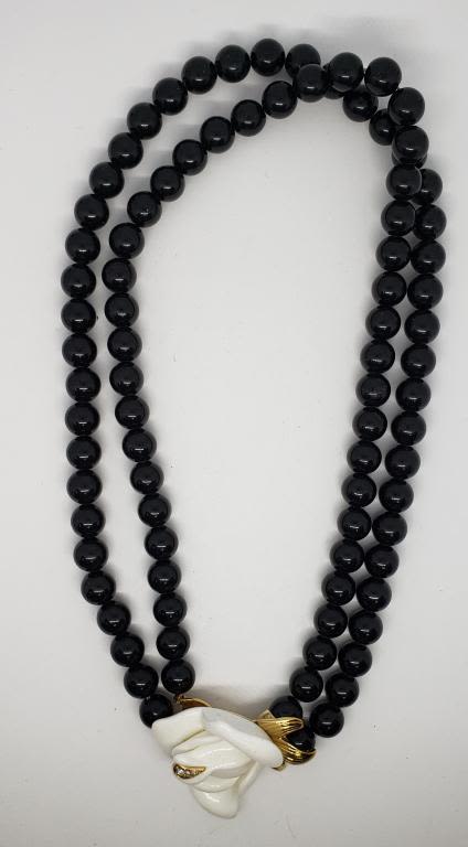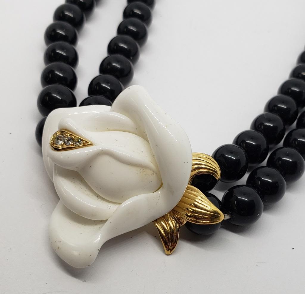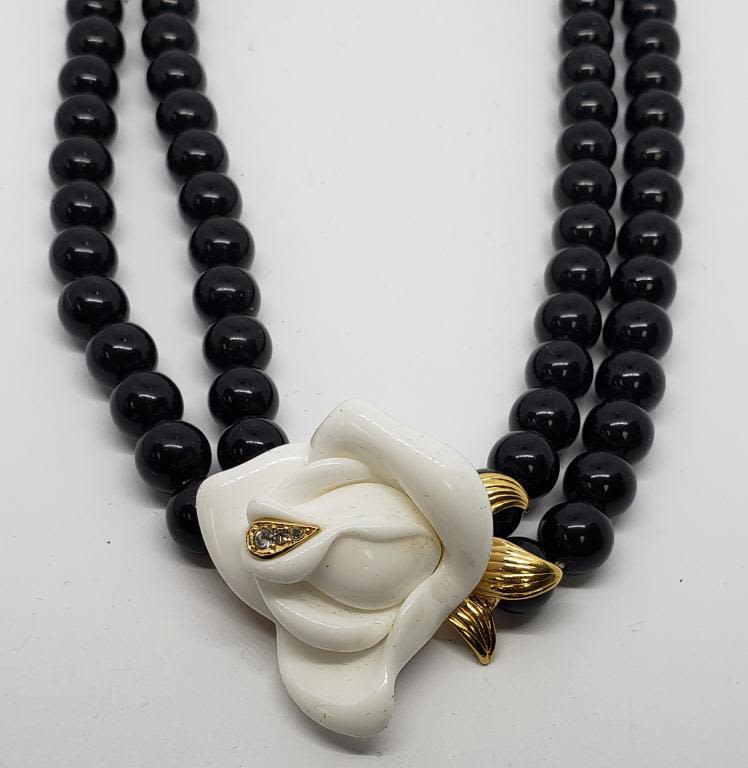 LUCITE ROSE NECKLACE WITH RHINESTONES-MULTI STRANDED