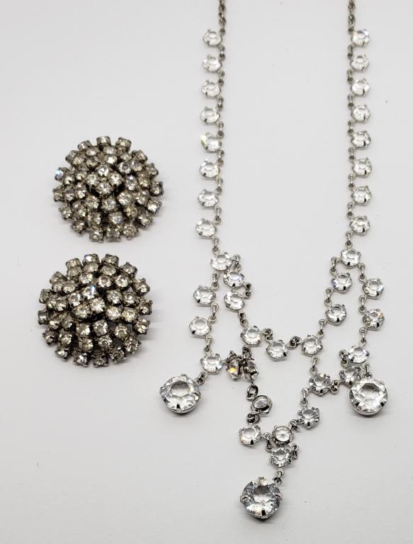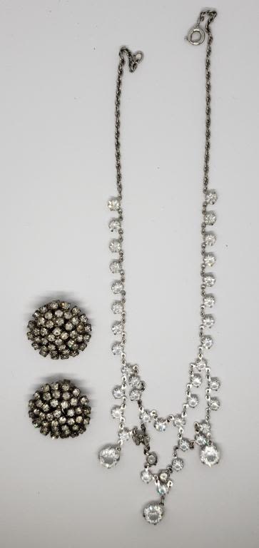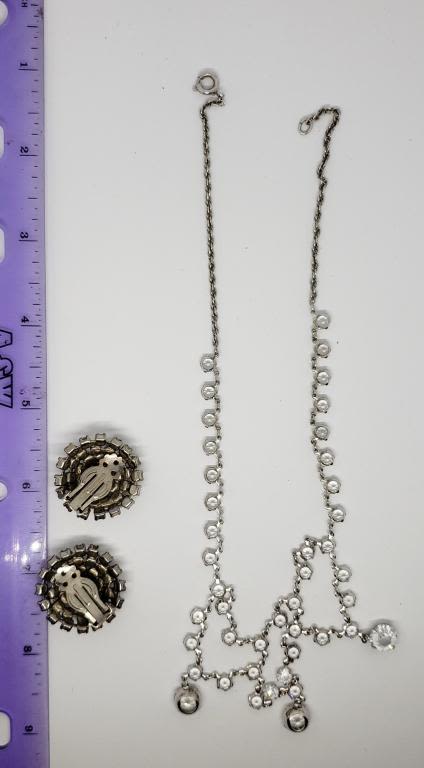 (1)PAIR OF CIRCULAR CLIP ON EARRINGS & (1)NECKLACE WITH DANGLY CHARMS