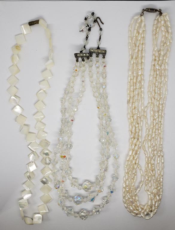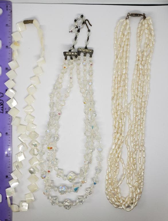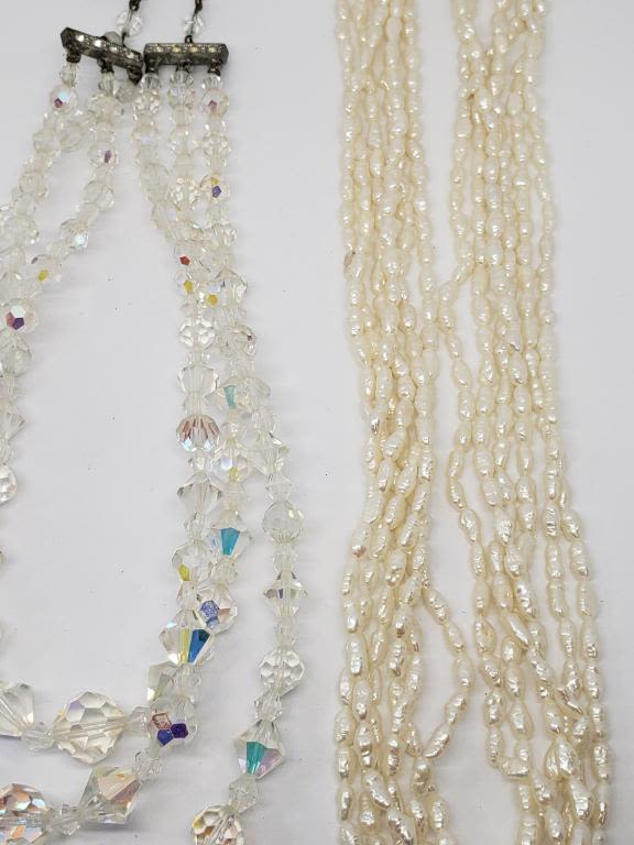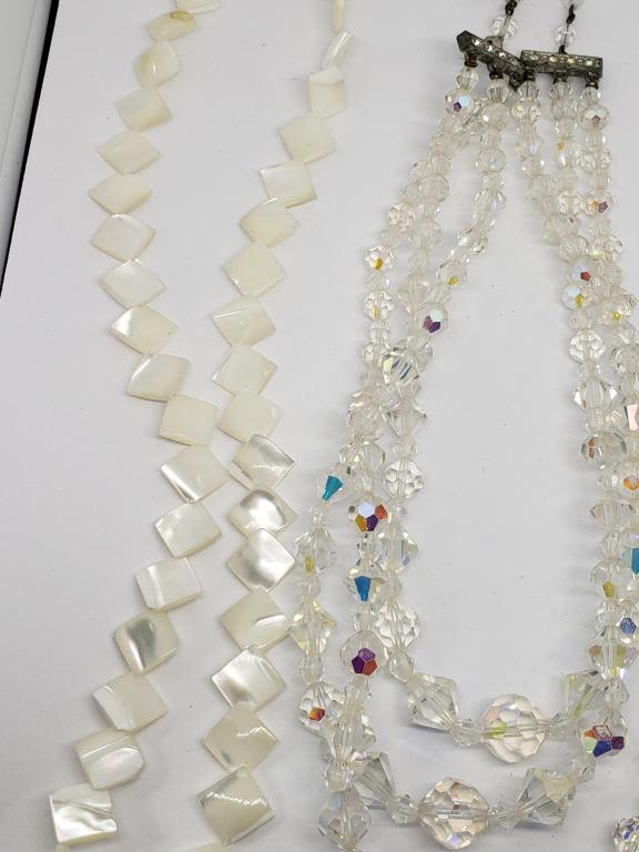 LAYERED CLEAR BEADED (1)MOTHER OF PEAR (1)MULTI STRANDED CULTURED PEARLS