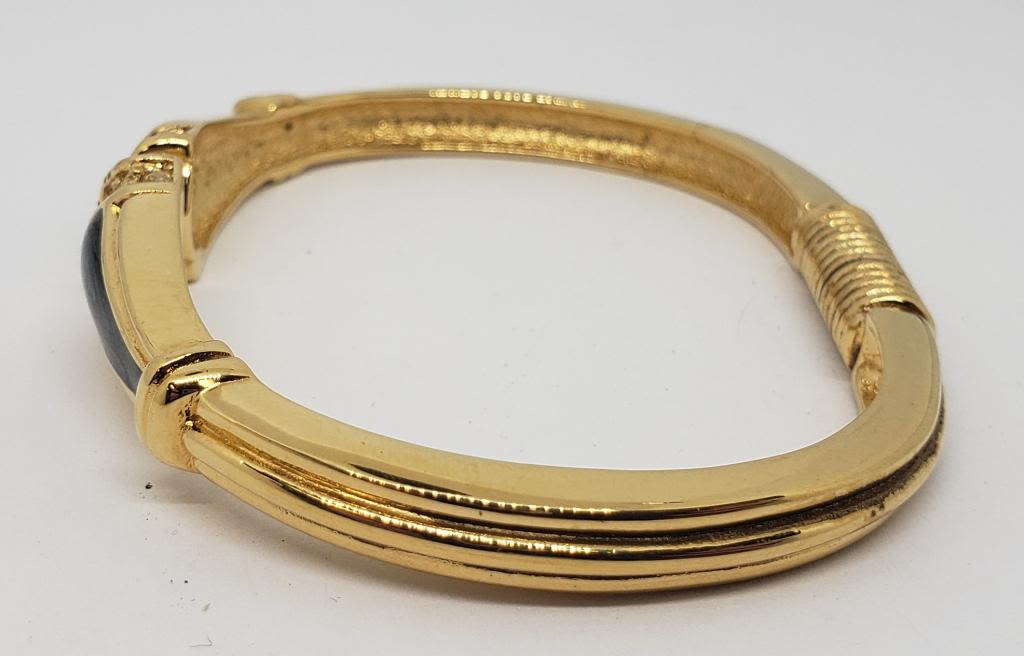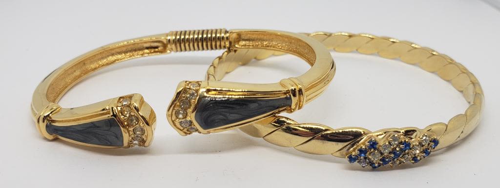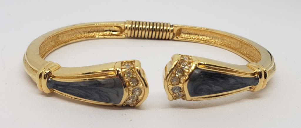 WITH ENAMEL AND RHINESTONES PLUS (1)GOLD TONED BANGLE WITH BLUE AND CLEAR RHINESTONES