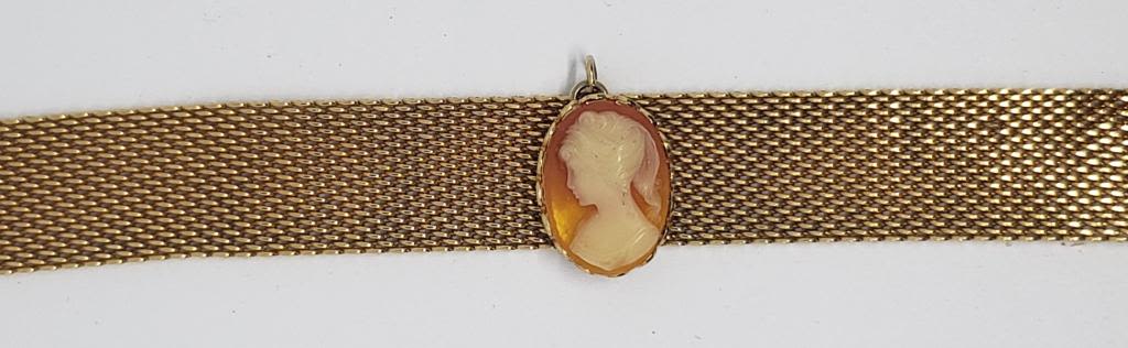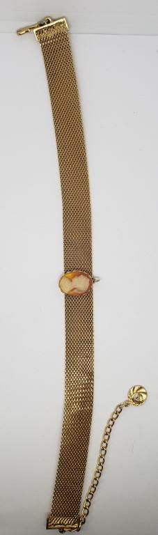 VINTAGE GOLD TONED MESH CAMEO CHOKER/NECKLACE