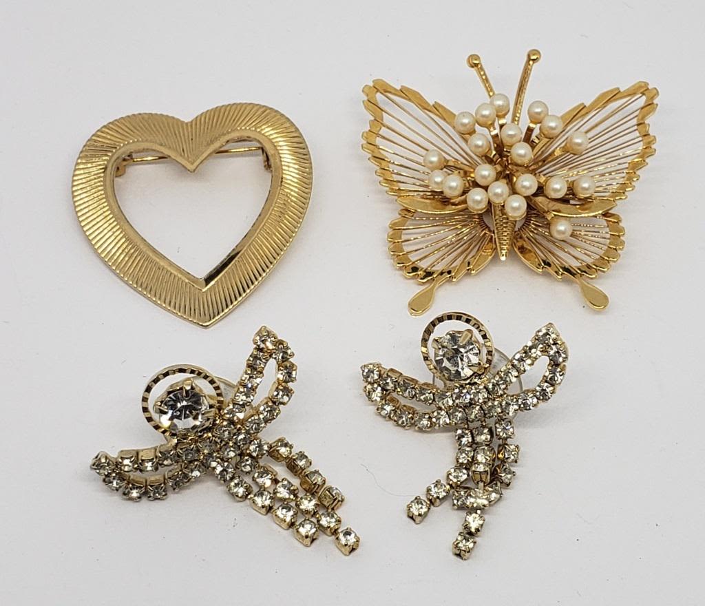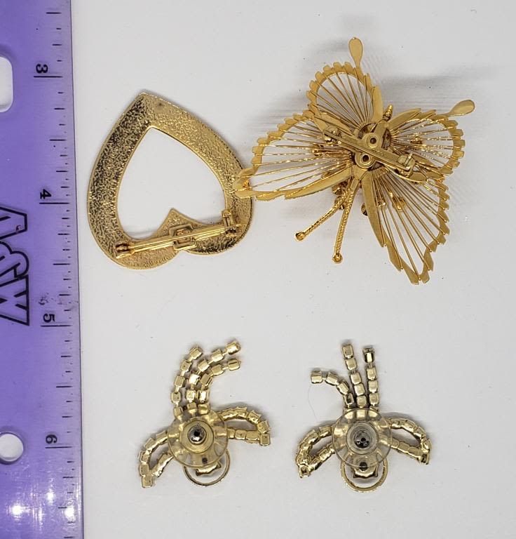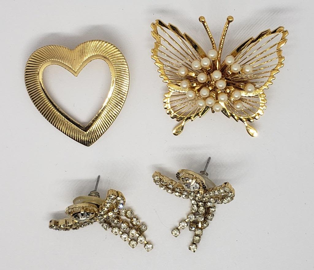 EARRINGS (1)HEART BROOCH (1)BUTTERFLY BROOCH WITH FAUX PEARLS