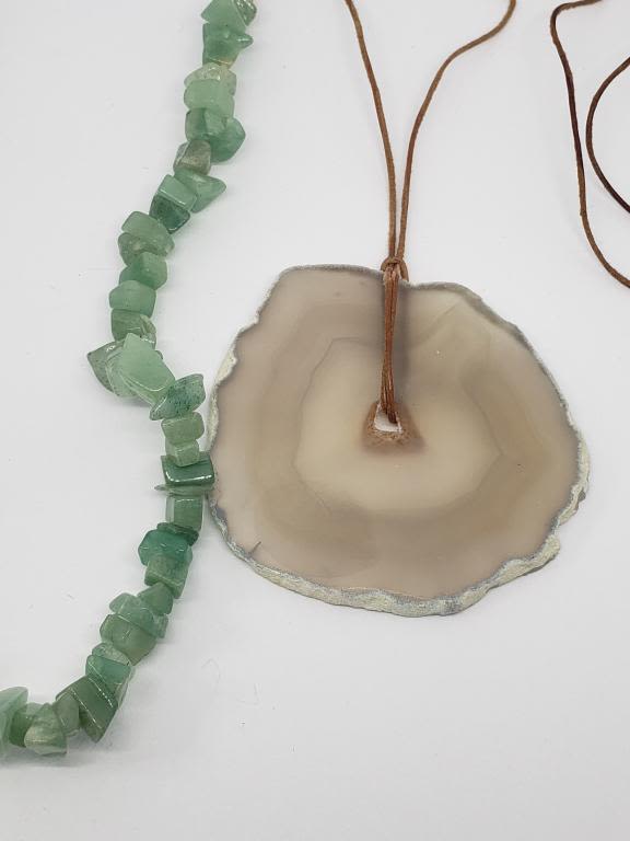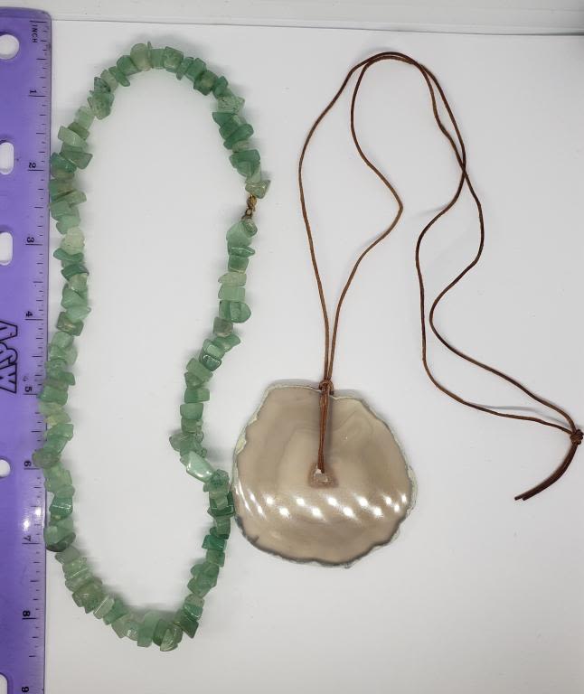 NATURAL TRANSLUCENT CUT STONE PENDANT WITH LEATHER CHAIN