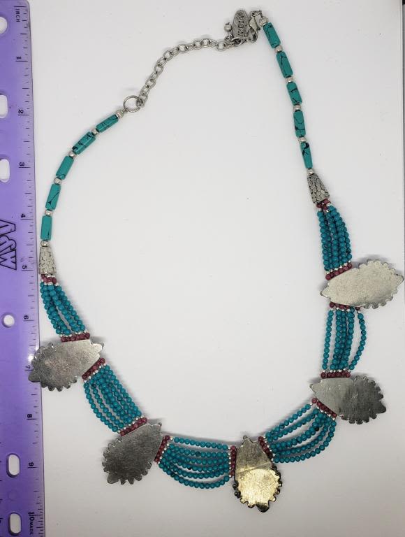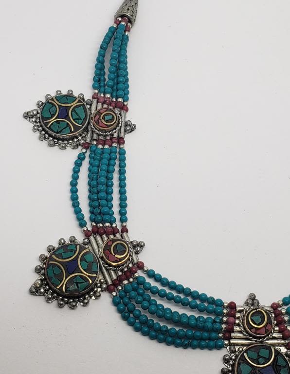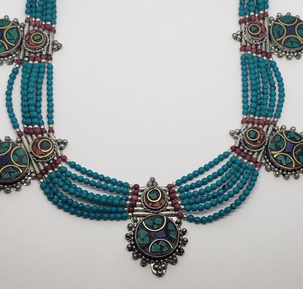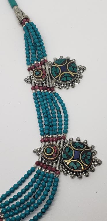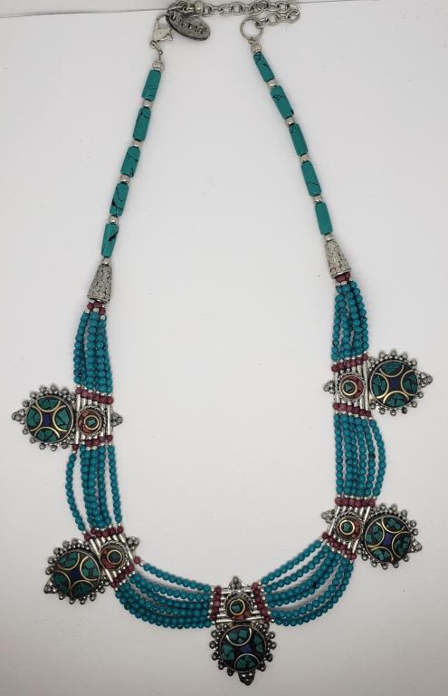 BEADED NECKLACE WITH (5)PENDANTS-CORK DESIGN-CHUNKY PIECE!