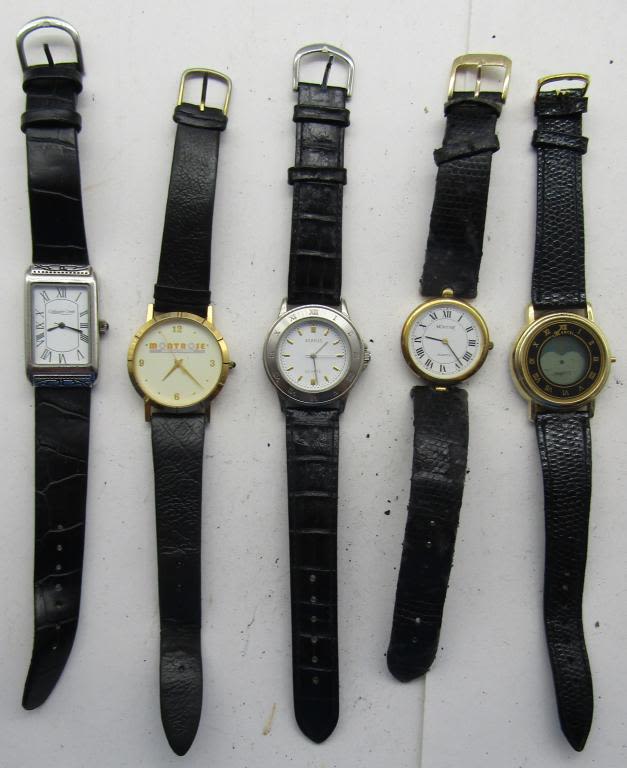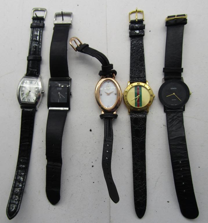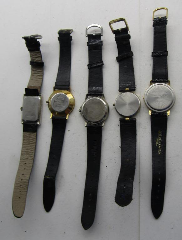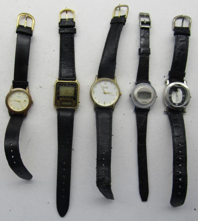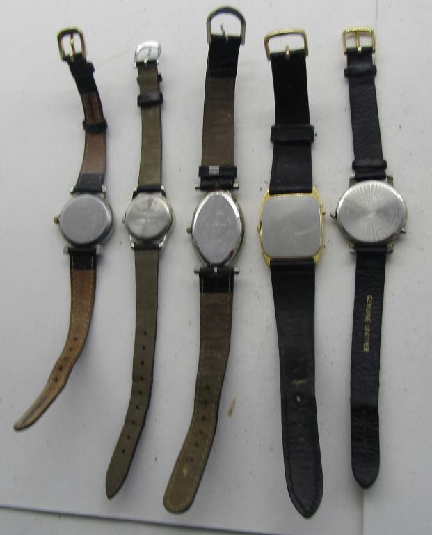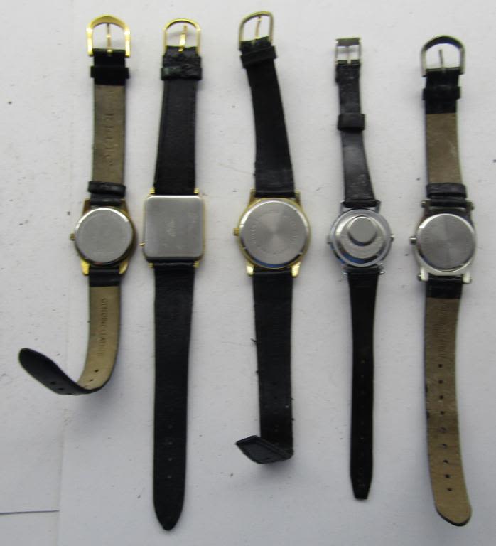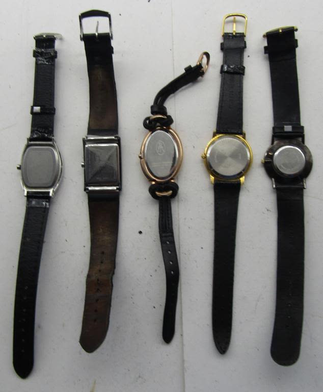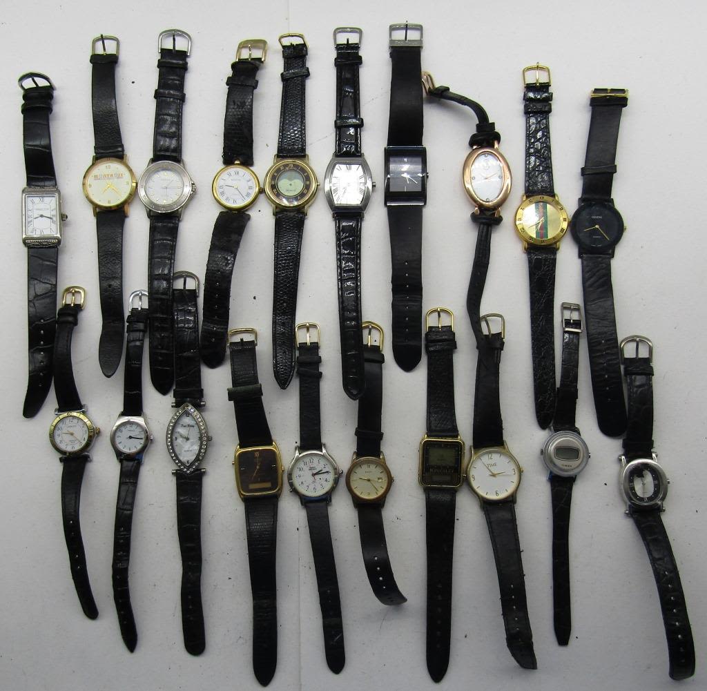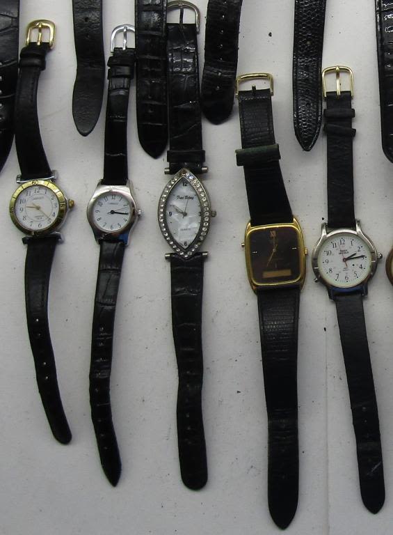 ALL UNTESTED:SOME MAY WORK, SOME MAY NOT, SOME MAY NEED BATTERIES, SOME FOR PARTS OR REPAIR-20 LADIES QUARTZ WATCHES-BLACK LEATHER BANDS, KINGSLEY, FRED BELAY GENVA, FARBIL, XERYUS, JACLYN
