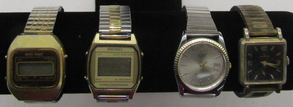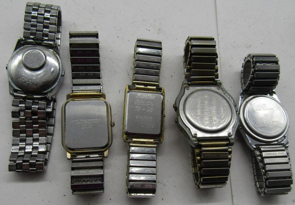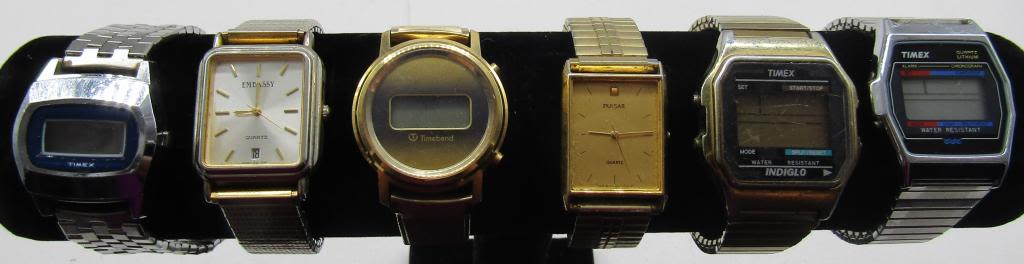 ALL UNTESTED: SOME MAY WORK-SOME MAY NOT-SOME MAY NEED BATTERIES-SOME FOR PARTS OR REPAIRS-10 MENS QUARTZ WATCHES-STRETCH BAND-(3)TIMEX-TIME BAND-SEIKO-EMBASSY-COMPU CHRON-PULSAR-MISC