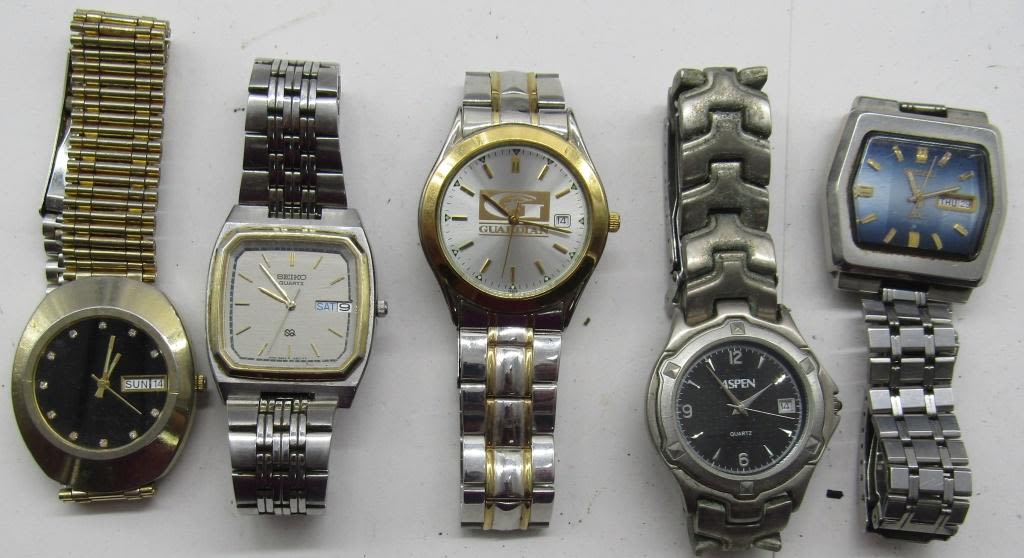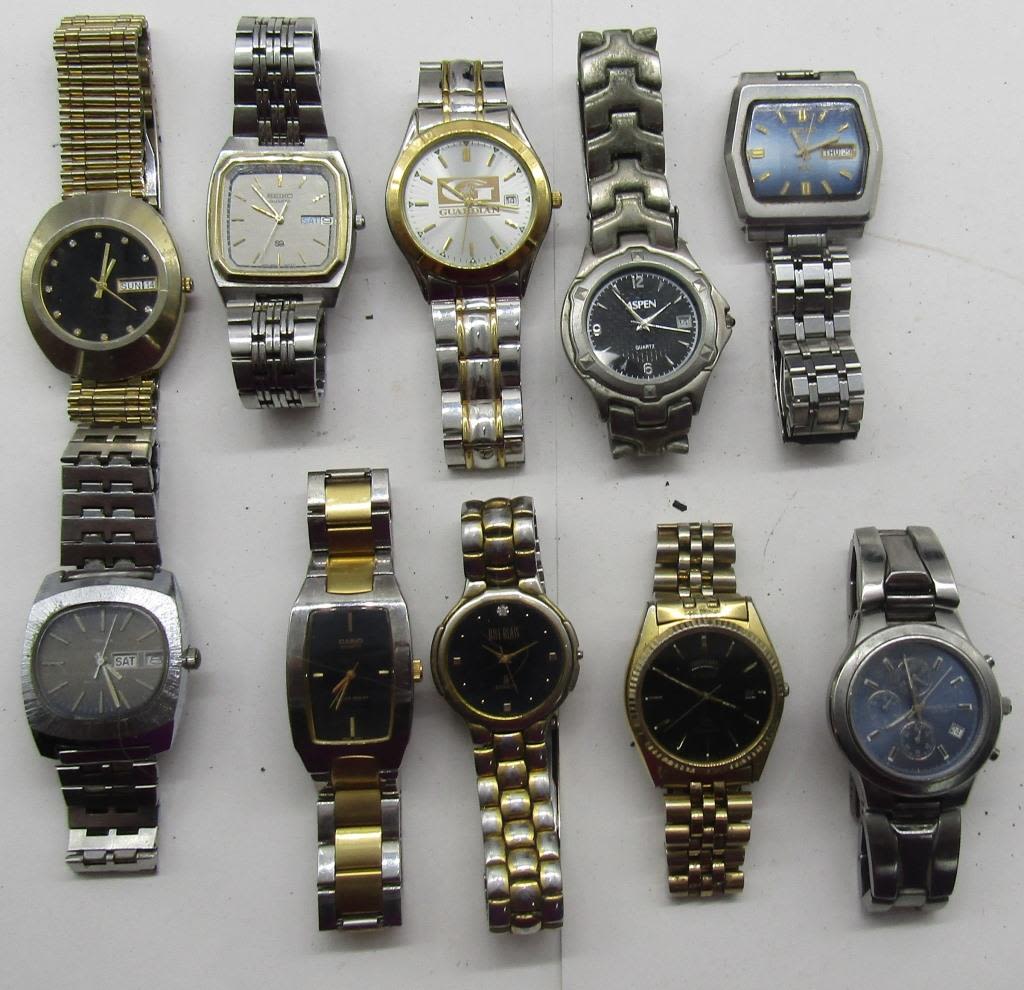 ALL UNTESTED: SOME MAY WORK-SOME MAY NOT-SOME MAY NEED BATTERIES-SOME FOR PARTS OR REPAIRS-10 MENS QUARTZ WATCHES-(3)SEIKO-BILL BLASS-ASPEN-TIMEX-KENNETH COLE-CASIO-MISC