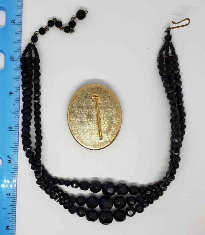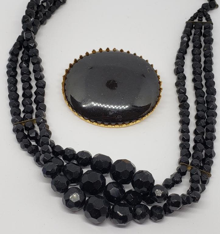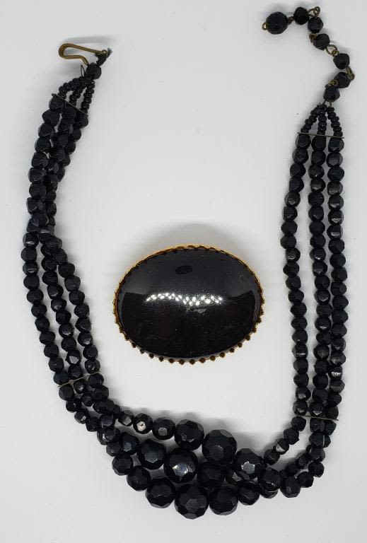 TONED BROOCH WITH LARGE BLACK LUCITE CENTER