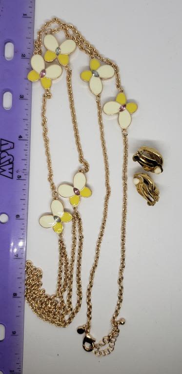 BUTTERFLY CHARMS WITH GREEN AND CRÈME ENAMEL AND RHINESTONES (1)LINKED NECKLACE/CHAIN (1)PAIR OF CLIP ON EARRINGS
