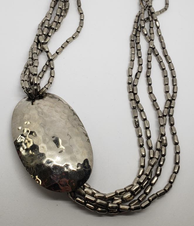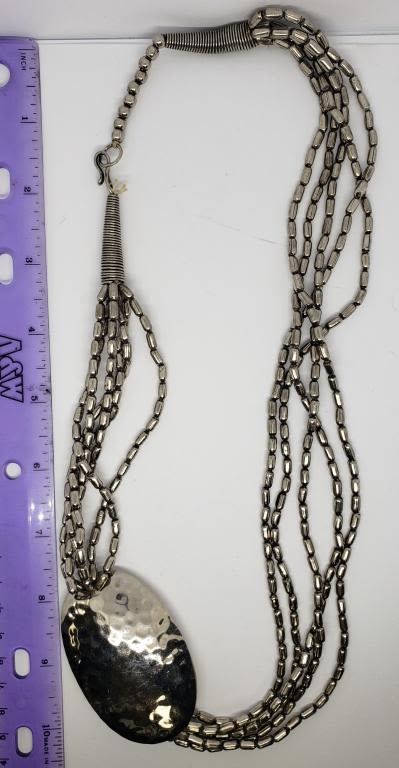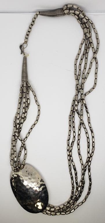 NECKLACE WITH LARGE OVAL HAMMERED PENDANT