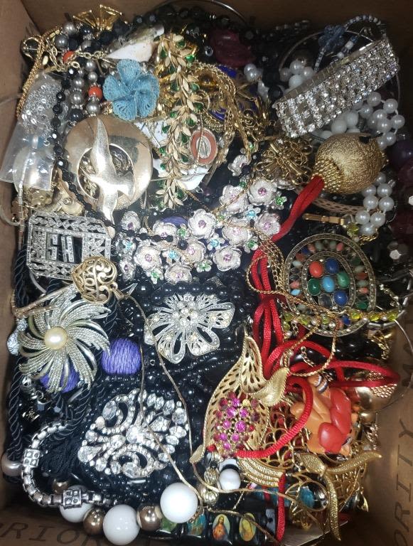 EACH LOT is UNIQUE! ABSOLUTELY A TREASURE HUNT – SOME PIECES MISSING STONES or NEEDING REPAIRED – GREAT FOR THE PINTEREST / CRAFT PERSON. MANY ITEMS NAMED – MEDIUM FLAT RATE BOX FULL (Shipping is MED. FLAT RATE COST)