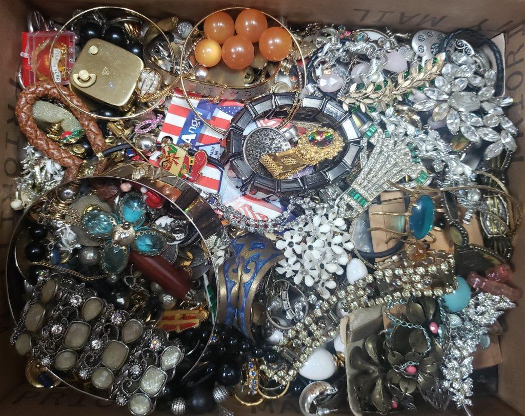 EACH LOT is UNIQUE! ABSOLUTELY A TREASURE HUNT – SOME PIECES MISSING STONES or NEEDING REPAIRED – GREAT FOR THE PINTEREST / CRAFT PERSON. MANY ITEMS NAMED – MEDIUM FLAT RATE BOX FULL (Shipping is MED. FLAT RATE COST)