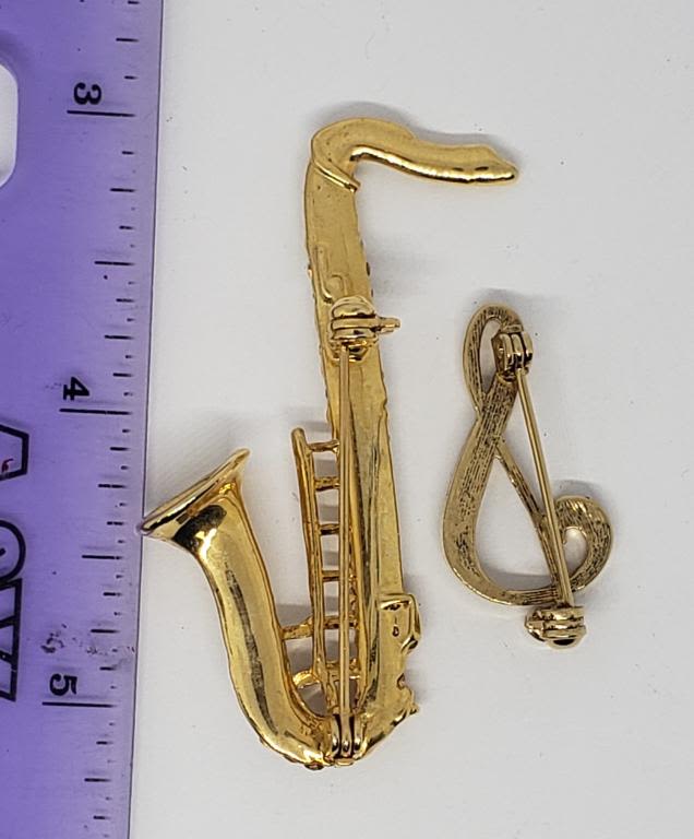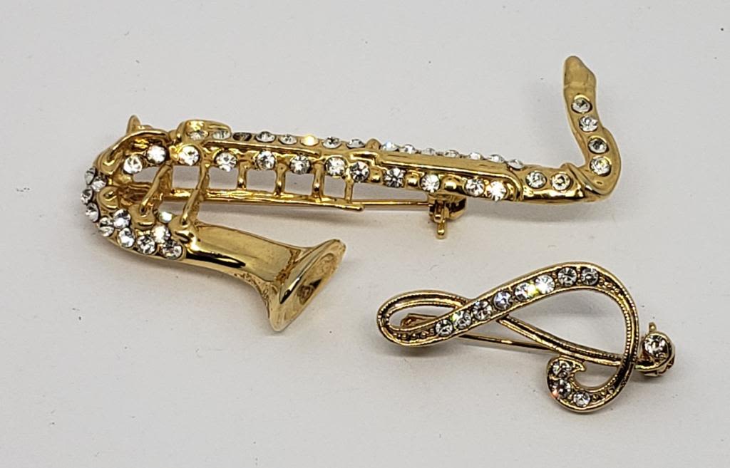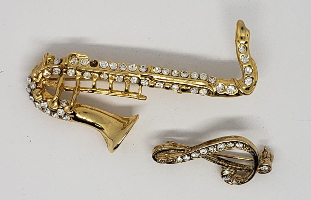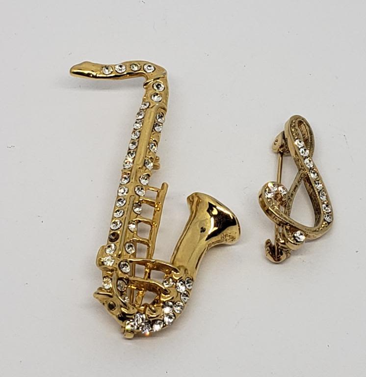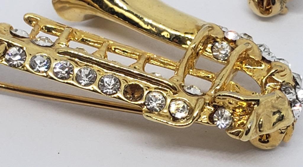 (MISSING (1)RHINESTONE) & (1)GOLD TONED "S" INITIAL RHINESTONE BROOCH
