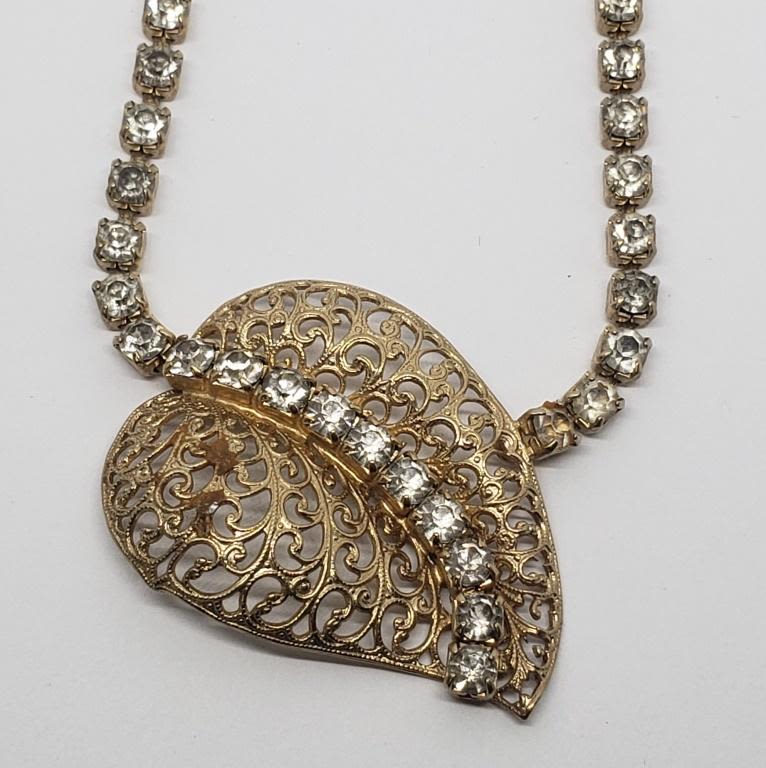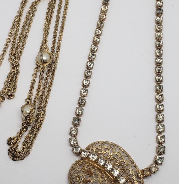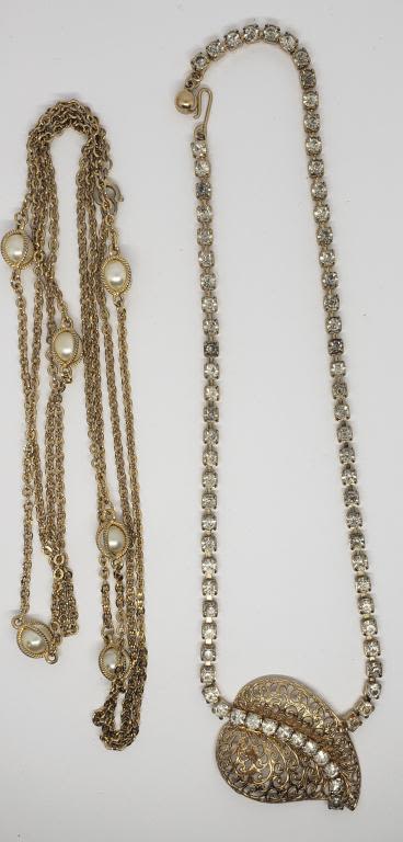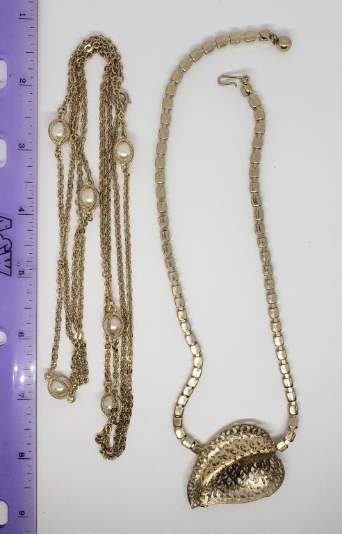 FILIGREE LEAF PENDANT & (1)54 INCH LINKED CHAIN WITH FAUX PEARL ACCENTS
