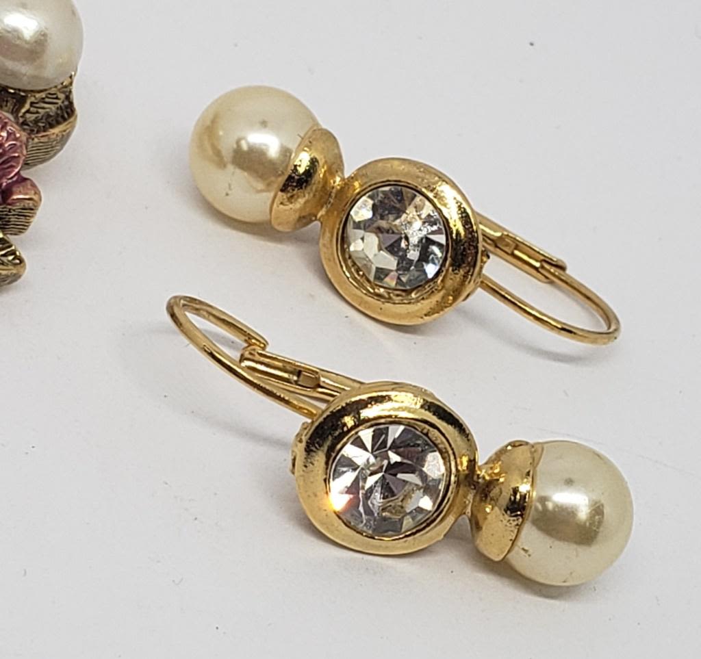 AND FAUX PEARLS PLUSE (1)PAIR OF PIERCED FAUX PEARL EARRINGS WITH RHINESTONES!