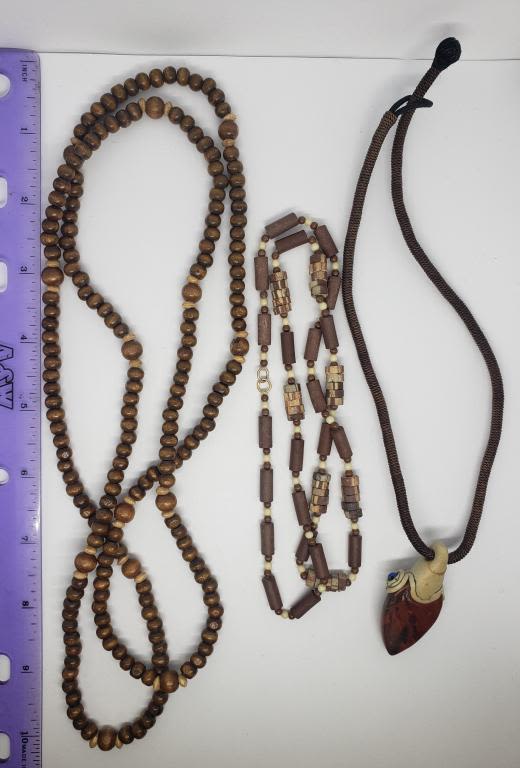JASPER STONE PENDANT PLUS (2)NATURAL COLOR BEADED NECKLACES