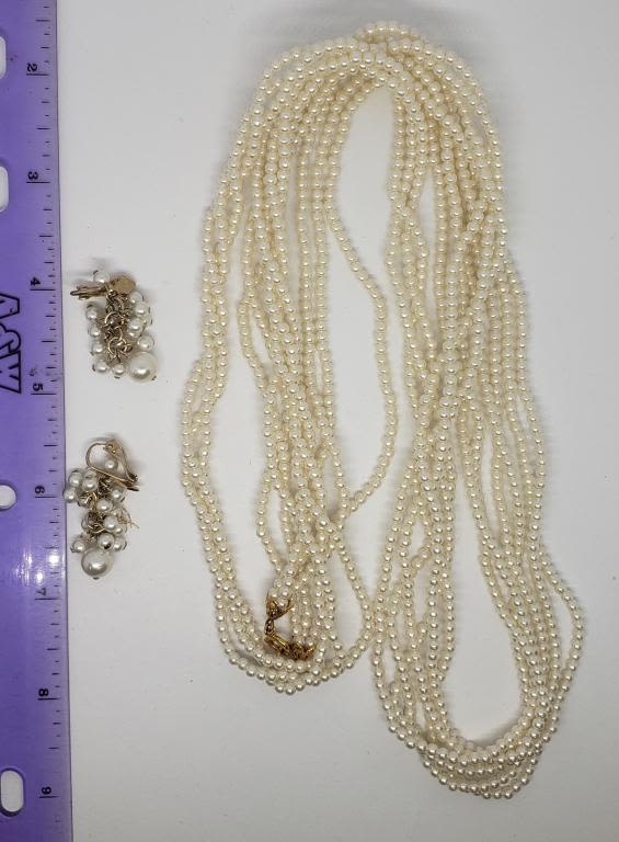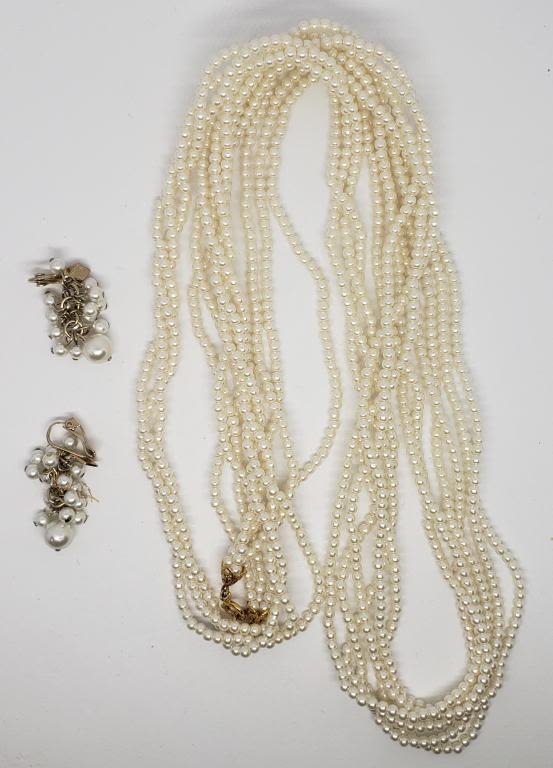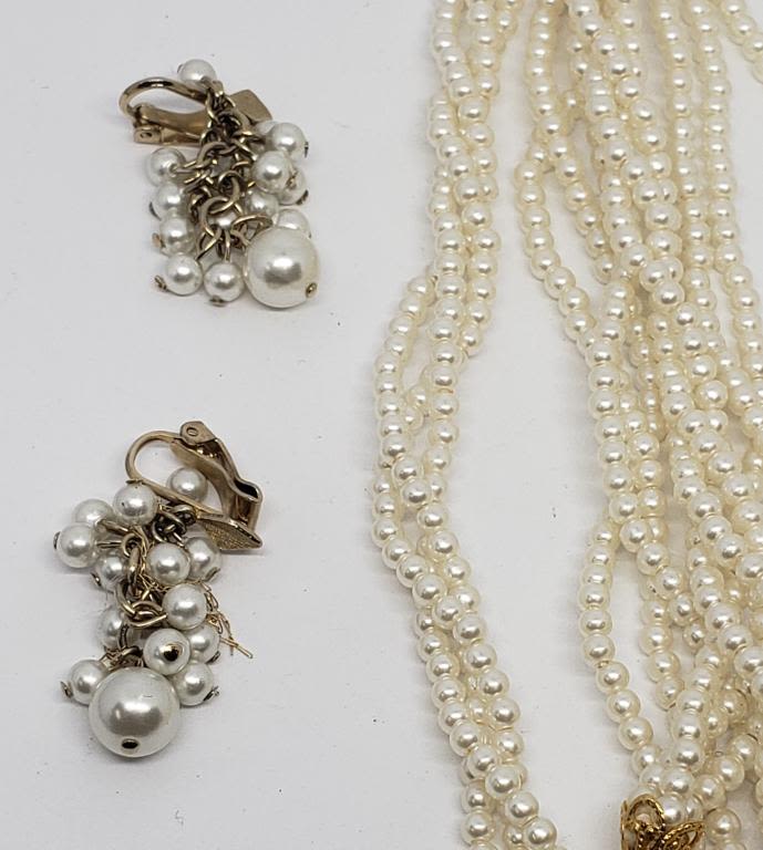 WITH (1)LEWIS SEGAL PAIR OF GOLD TONED CLIP ON DANGLY FAUX PEARL EARRINGS