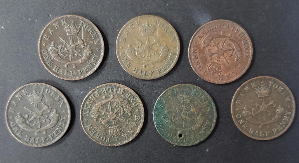HALF PENNY TOKEN COIN – 1850, (3) 1852, (2) 1854, 1857