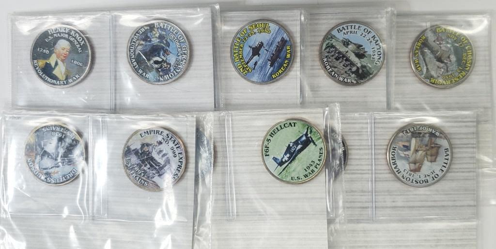 (6) KOREAN WAR all different, (2) AM REVOLUTION, (2) WAR of 1812, (2) U.S. WAR PLANES, (2) U.S. TRAIN
