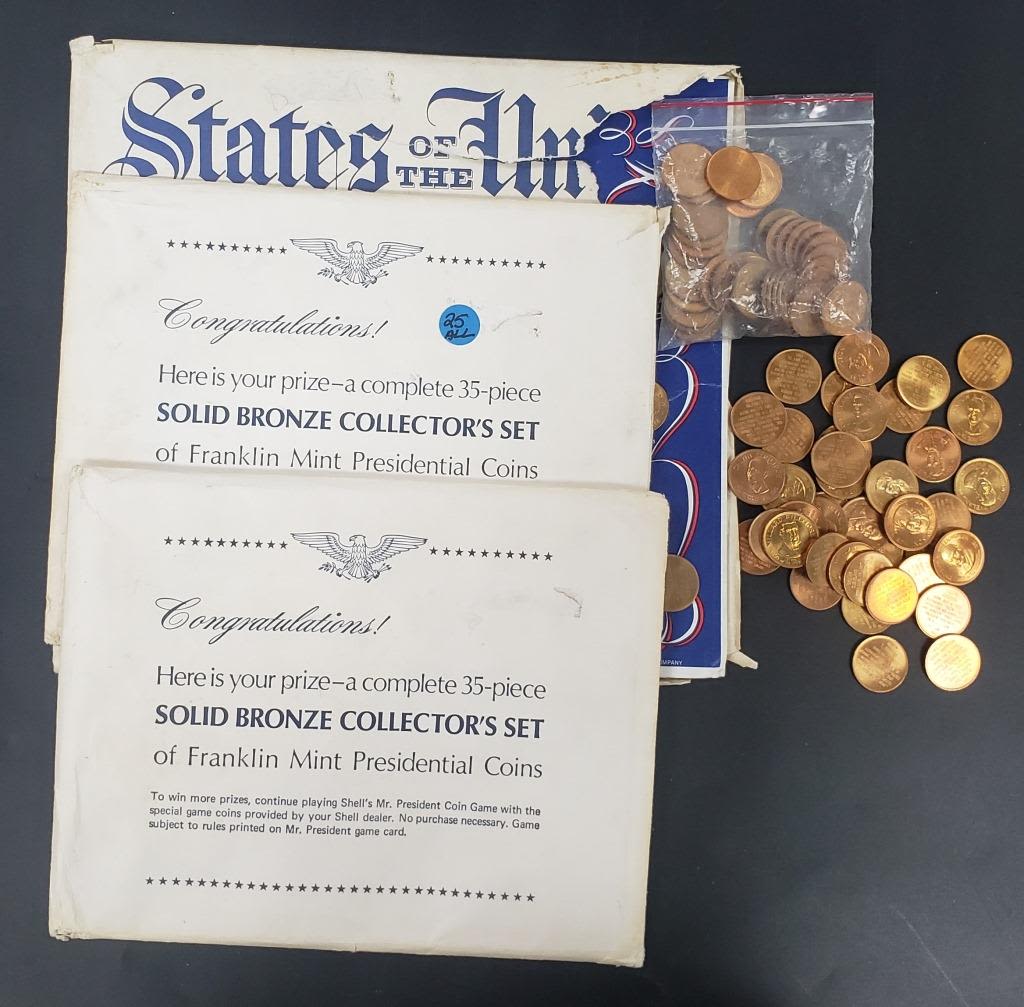 PRESIDENTIAL COINS & STATES OF THE UNION COINS w/VINTAGE DISPLAY BOARDS