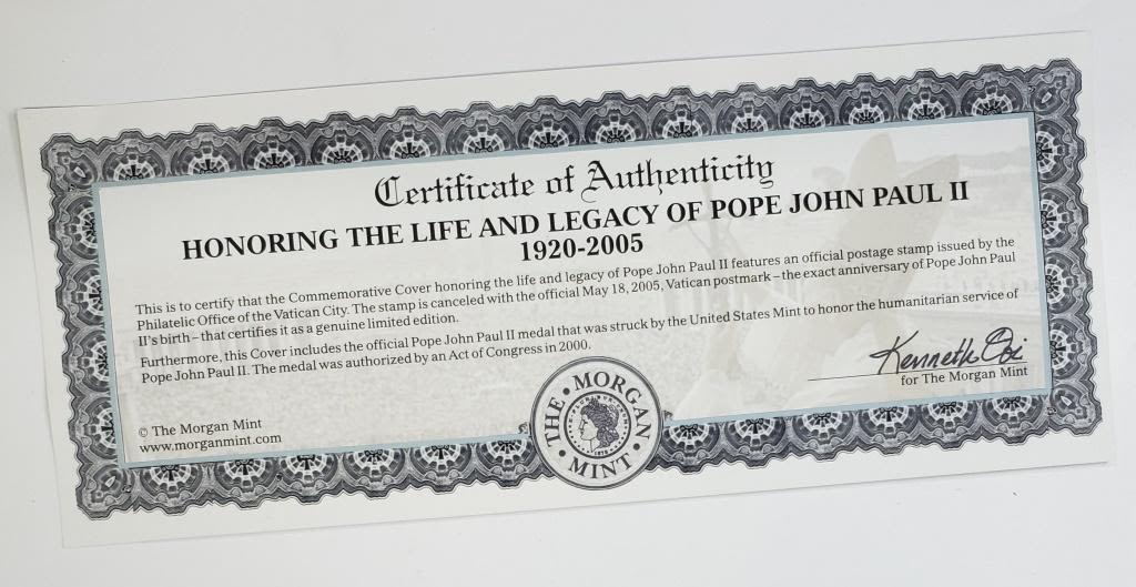 JOHN PAUL II by MORGAN MINT – LIMITED EDITION COPPER COIN & STAMPED ENVELOPED