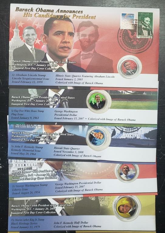 FIRST DAY COVER COLLECTION – (5) COLORIZED COINS in NICE DISPLAY STAMPED ENVELOPES