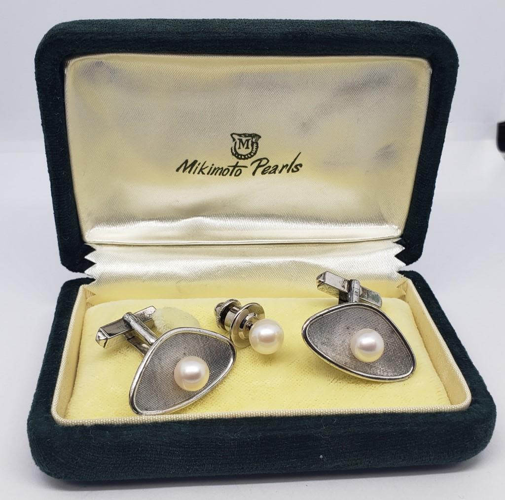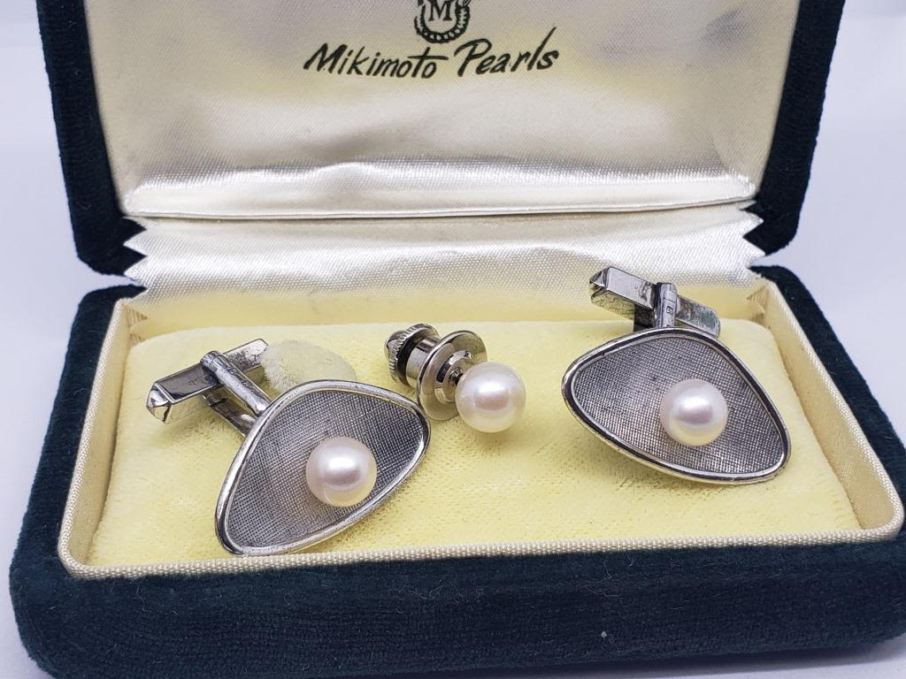 SILVER TONED CUFF LINKS PLUS MATCHING TIE PIN