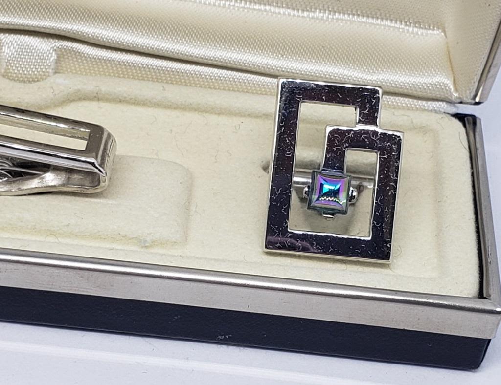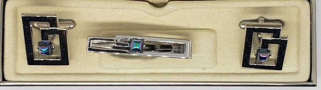 WITH MATCHING TIE CLIP-METALLIC RHINESTONE CENTER