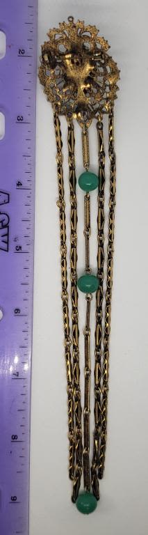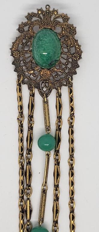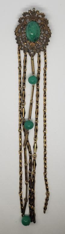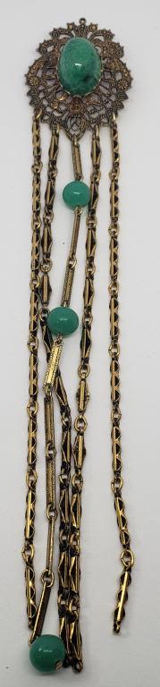 GREEN LUCITE CENTER-LONG DANGLY TASSLES WITH GREEN BEAD ACCENTS