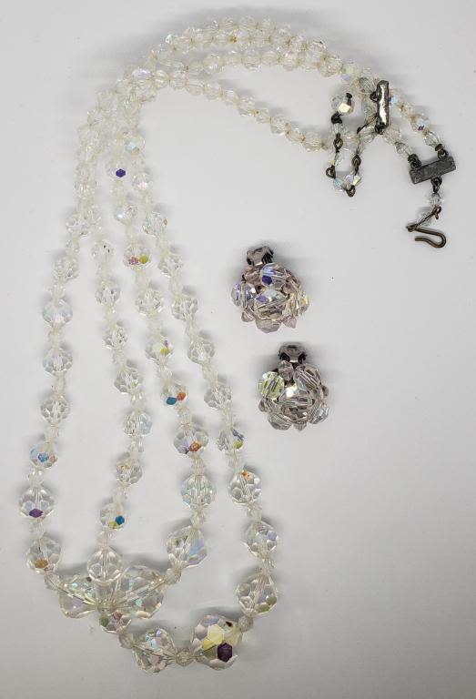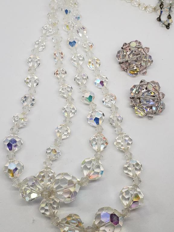 PLUS (1)PAIR OF SILVER TONED CLEAR BEADED CLIP ON EARRINGS