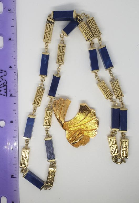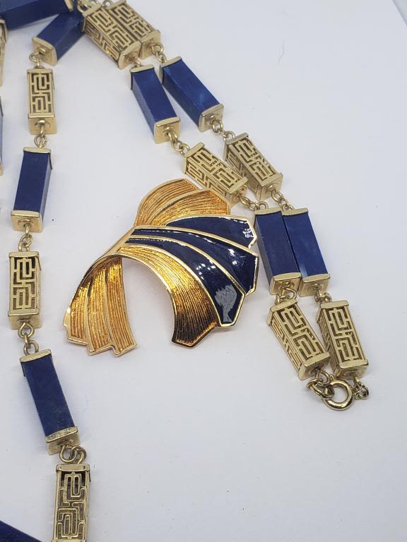 PLUS (1)GOLD TONED SLIDE PENDANT WITH NAVY ENAMEL