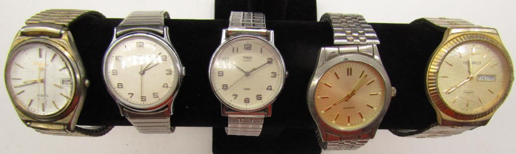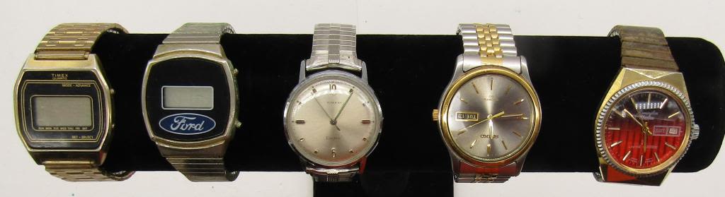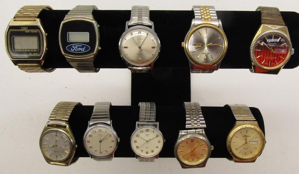 ALL UNTESTED: SOME MAY WORK, SOME MAY NOT, SOME MAY NEED BATTERIES, SOME FOR PARTS OR REPAIRS- 10 MENS QUARTZ WATCHES -STRETCH-SEIKO-HELLBROS-(4)TIMEX-FORD-REMINGT ON-PULSAR-MISC