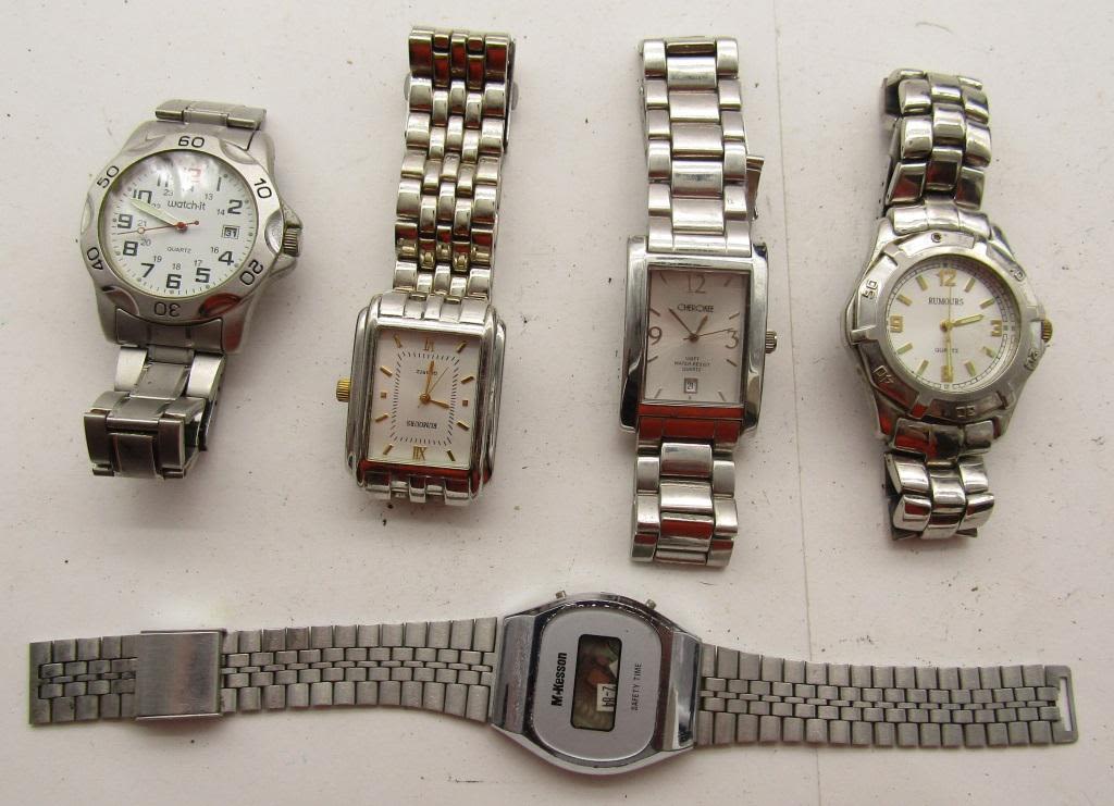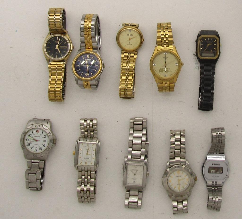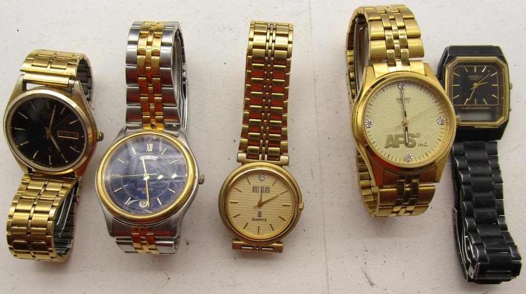 ALL UNTESTED: SOME MAY WORK, SOME MAY NOT, SOME MAY NEED BATTERIES, SOME FOR PARTS OR REPAIRS- 10 MENS QUARTZ WATCHES -(2)RUMOURS-(2)SEIKO-CITIZEN-MCKESSON-BILL BLASS-WATCH IT-CHEROKEE-CARAVELLE-MISC