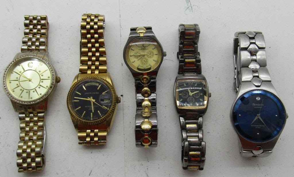 ALL UNTESTED: SOME MAY WORK, SOME MAY NOT, SOME MAY NEED BATTERIES, SOME FOR PARTS OR REPAIRS- 10 MENS QUARTZ WATCHES-PIERRE CARDIN-BALAIR-ARMITRON-(2)SEIKO-RUMOURS-(2)CH ARLES RAYMOND-GEVEVA-MISC