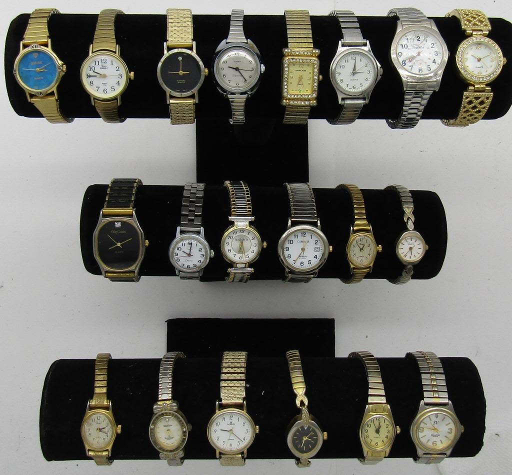 ALL UNTESTED: SOME MAY WORK, SOME MAY NOT, SOME MAY NEED BATTERIES, SOME FOR PARTS OR REPAIRS- 20 WOMENS QUARTZ WATCHES-OLEG CASSINI-WATCH IT-TIMEX-DETAILS-GEMTIME-(4)TIMEX-CARRIAGE-SH