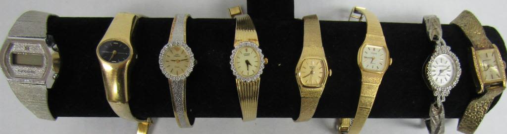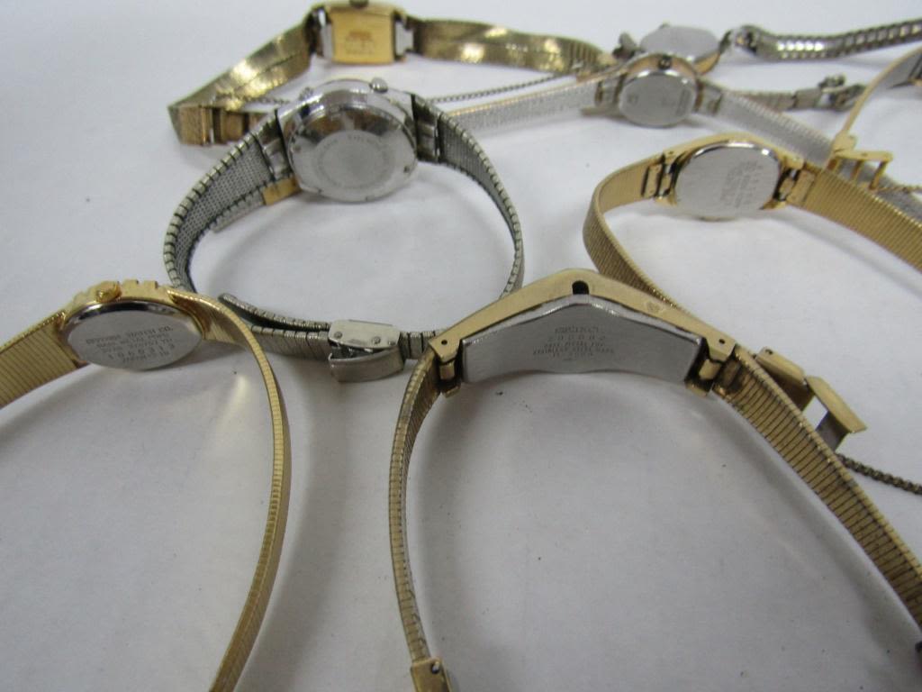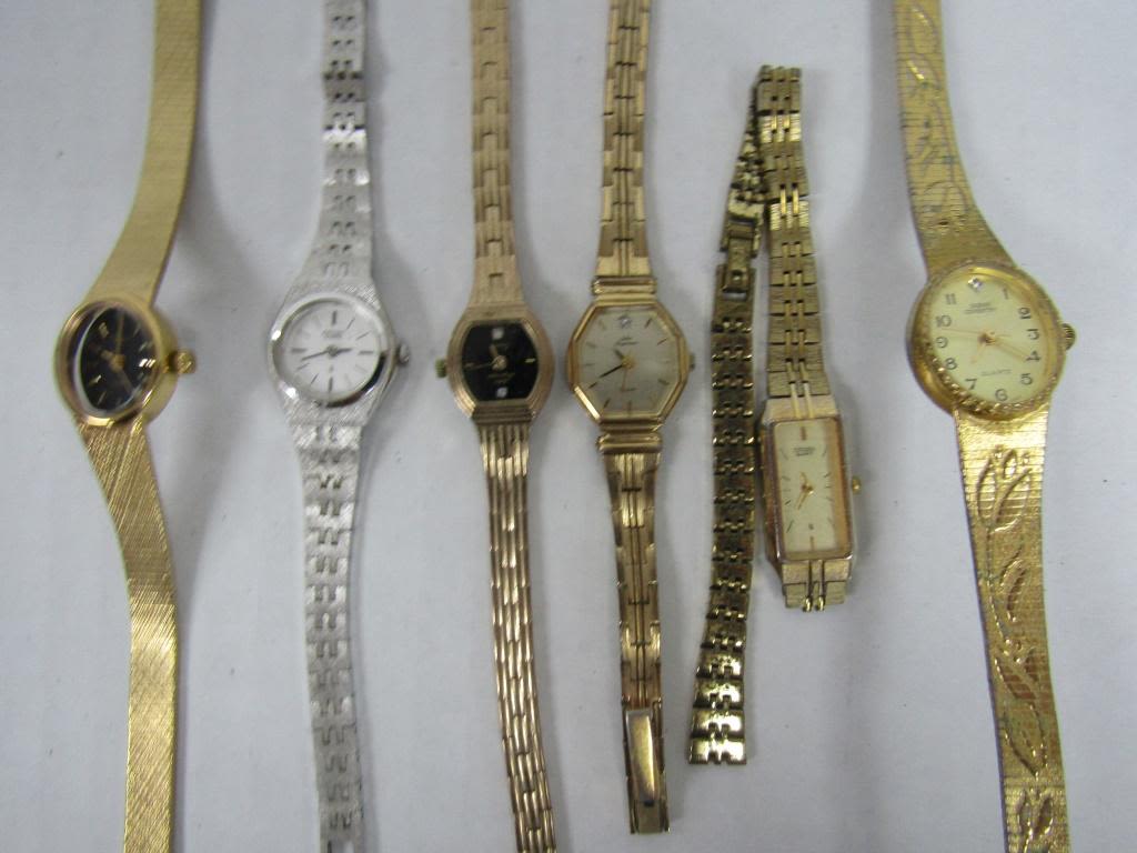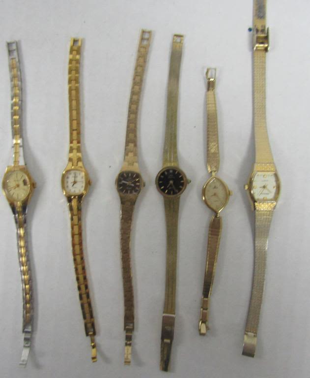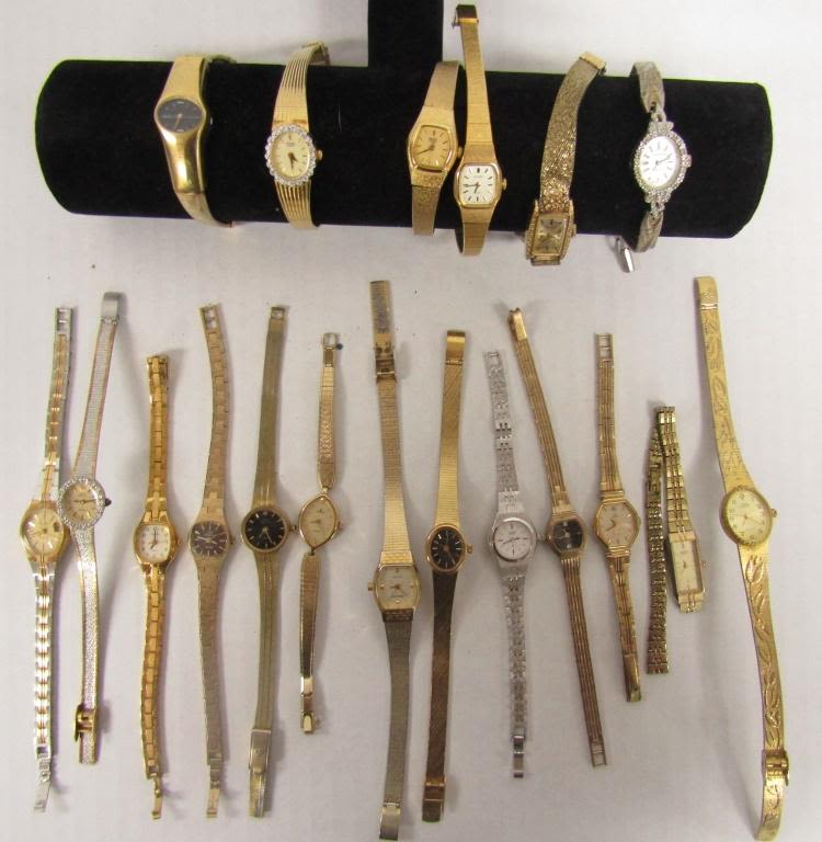 20 LADIES QUARTZ WATCHES-NOT TESTED AS TO WORKING OR NOT – SOME FOR PARTS OR REPAIR-SOME MAY WORK–CITIZEN, SARAH COVENTRY, TIMEX, LORUS, HELLSBRO, (4)TULES FERGENSON, (3)SEIKO , ADVANCE, LA