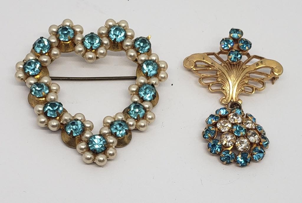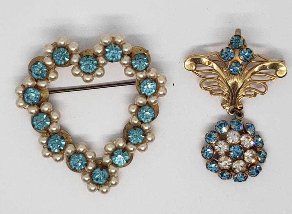 BLUE RHINESTONES: (1)HEART WITH FAUX PEARLS