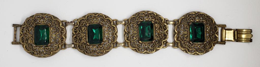 WITH LARGE EMRALD GREEN RHINESTONES-FILIGREE BORDER