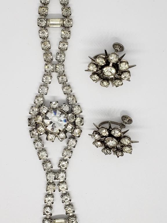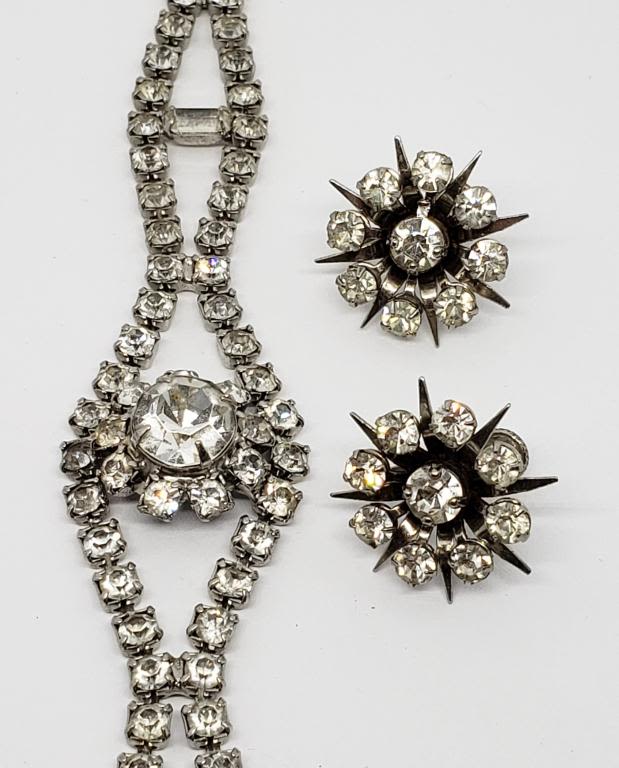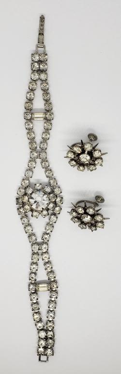 RHINESTONE BRACELET PLUS (1)PAIR OF TWIST BACK RHINESTONE EARRINGS