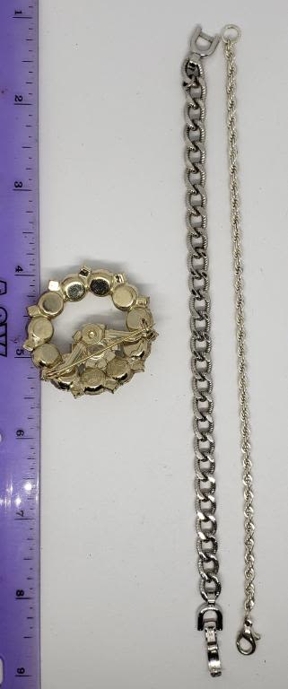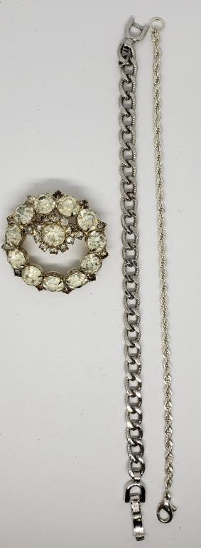 (1)VTG SILVER TONED RHINESTONE BROOCH