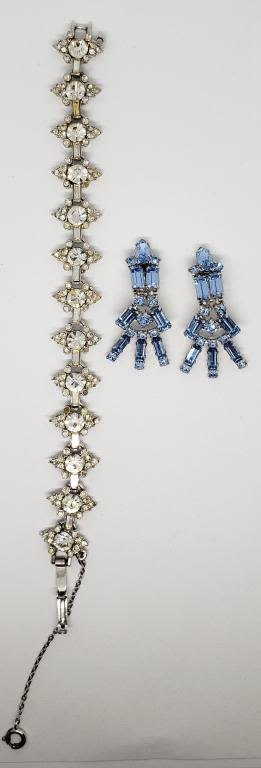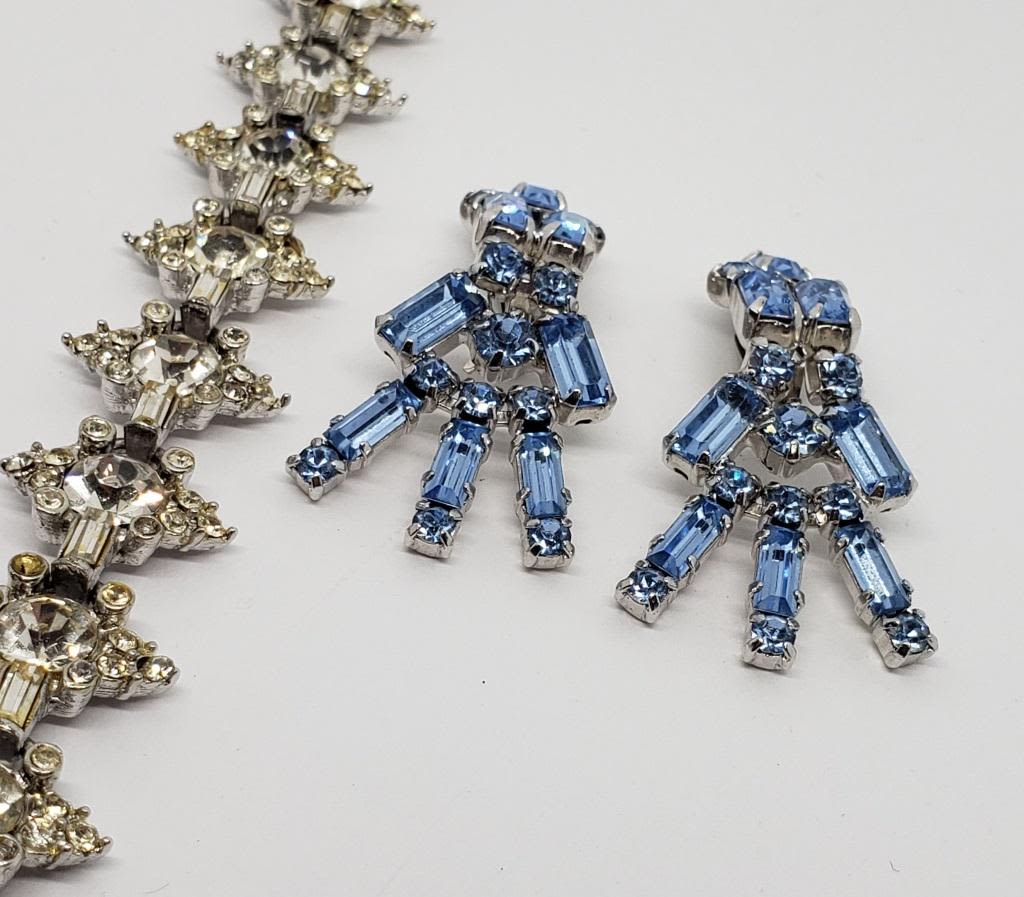 (1)PAIR OF CLIP ON BABY BLUE RHINESTONE CLIP ON EARRINGS