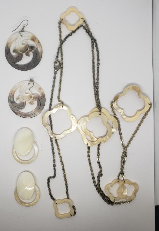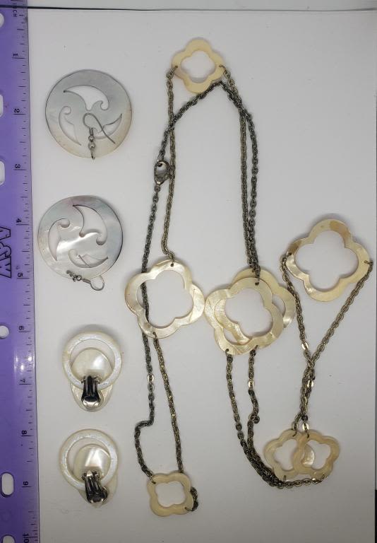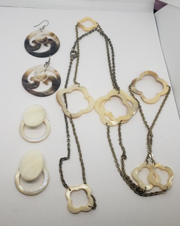 (1)NECKLACE (1)PAIR OF CLIP ON EARRINGS (1)PAIR OF PIERCED DANGLY